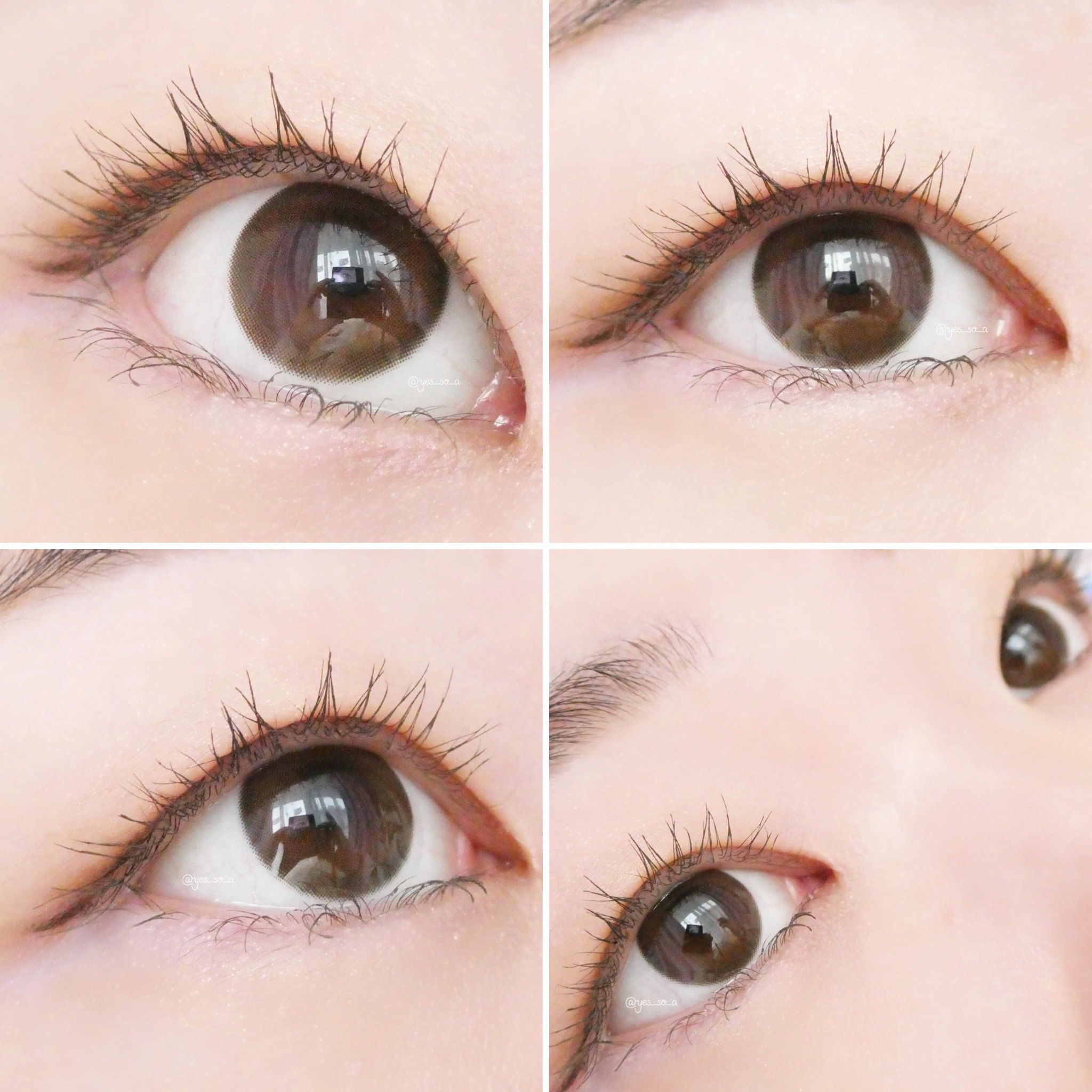 ソフトなブラウン×くっきりフチのチョコカラコン。グラデーションのデザインですが1色なので、焦げ茶色の瞳の私がつけるとグラデ感はほぼ分からない。 しっかり目元を盛りたい方に○ 着色直径は表記よりもやや大きめに感じました! 実際に鏡などで見てみるともう少し落ち着いた控えめブラウンです🫶