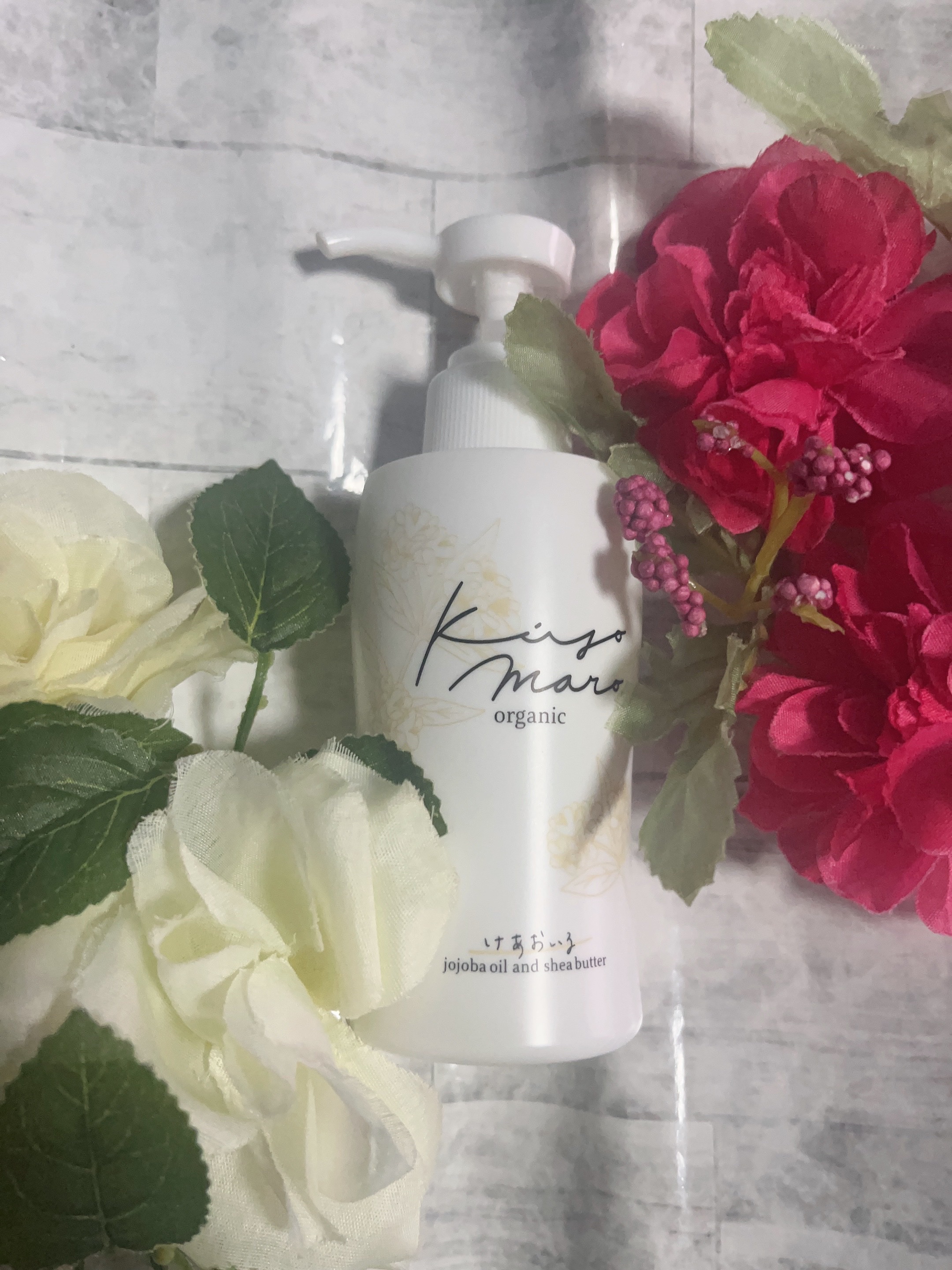全成分はなんと、ホホバ種子油・シア脂・ミツロウ・ベルガモット果実油・マンダリンオレンジ果皮油 と、シンプルで安心できる名前ばかり。 くびれが可愛らしい、しっかり自立するポンプ容器に入っています。 少しとろみを感じるような、柔らかなテクスチャー。