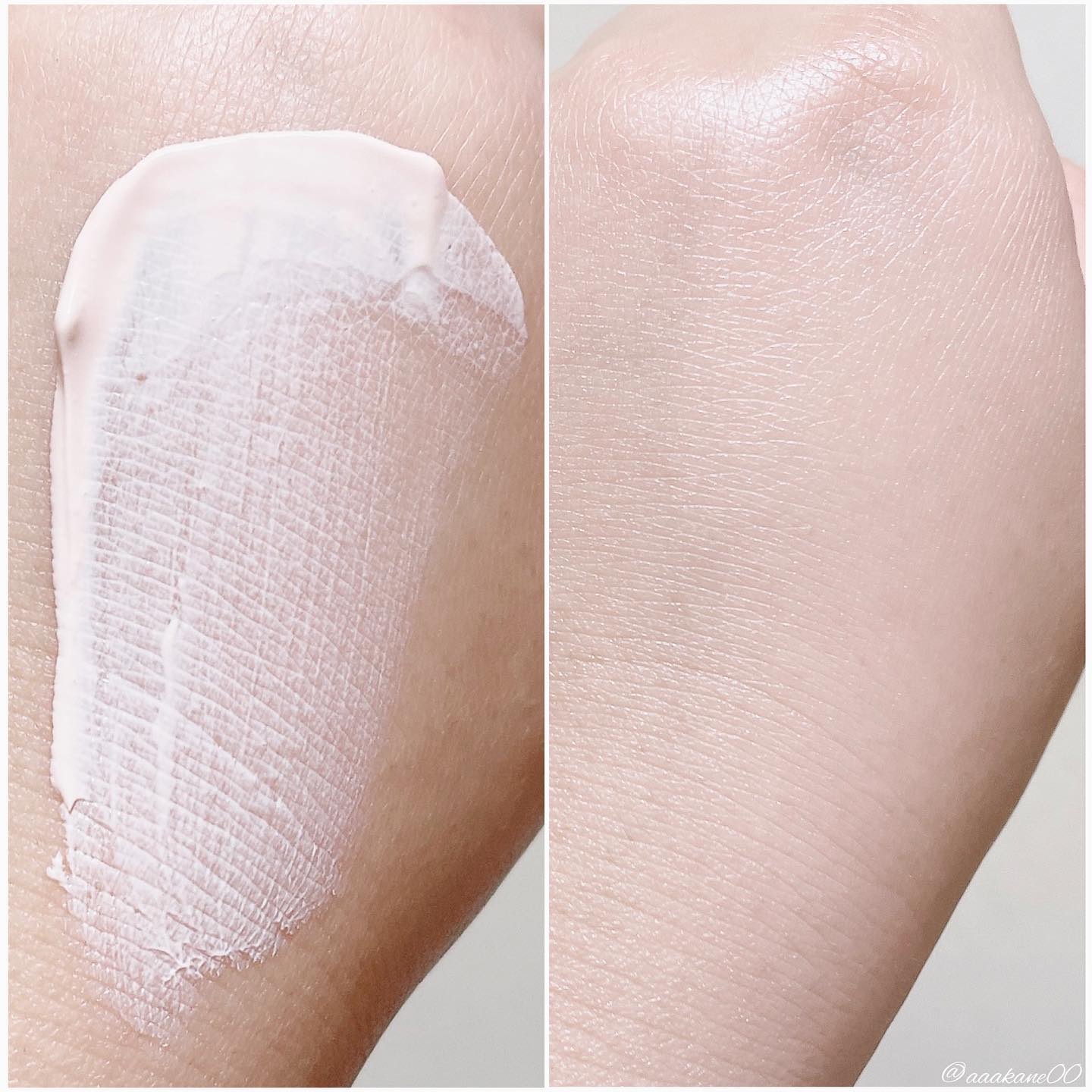 よく振ってから使うタイプでキャップが大理石みたいで可愛い💖 手のひらサイズでポーチにも入れやすい ピンクベージュカラーでトーンアップ効果あり。塗ったそばから肌がサラサラになっていくのを感じる。少量で伸びもいいのでコスパも良さそう 脂性肌さんは全顔の使用もおすすめだけど、混合肌(頬は敏感肌)の自分は全顔に使うと頬やマスクが擦れる部分にほんの少し乾燥を感じたので、テカリやすいTゾーンへの部分使いが好きだった。部分使いしても目立つトーンアップじゃなくて肌に馴染む色なのもいい👌 紫外線散乱剤と紫外線吸収剤がどちらも入っているタイプでUVカット効果がしっかりついてるのも、これからの季節に嬉しいポイント さらっと感を出す為には仕方ないのかもしれないけど8番目にエタノールは配合されている。香りはほぼなくてほんのり化粧品っぽい香りがするかなぁ程度
