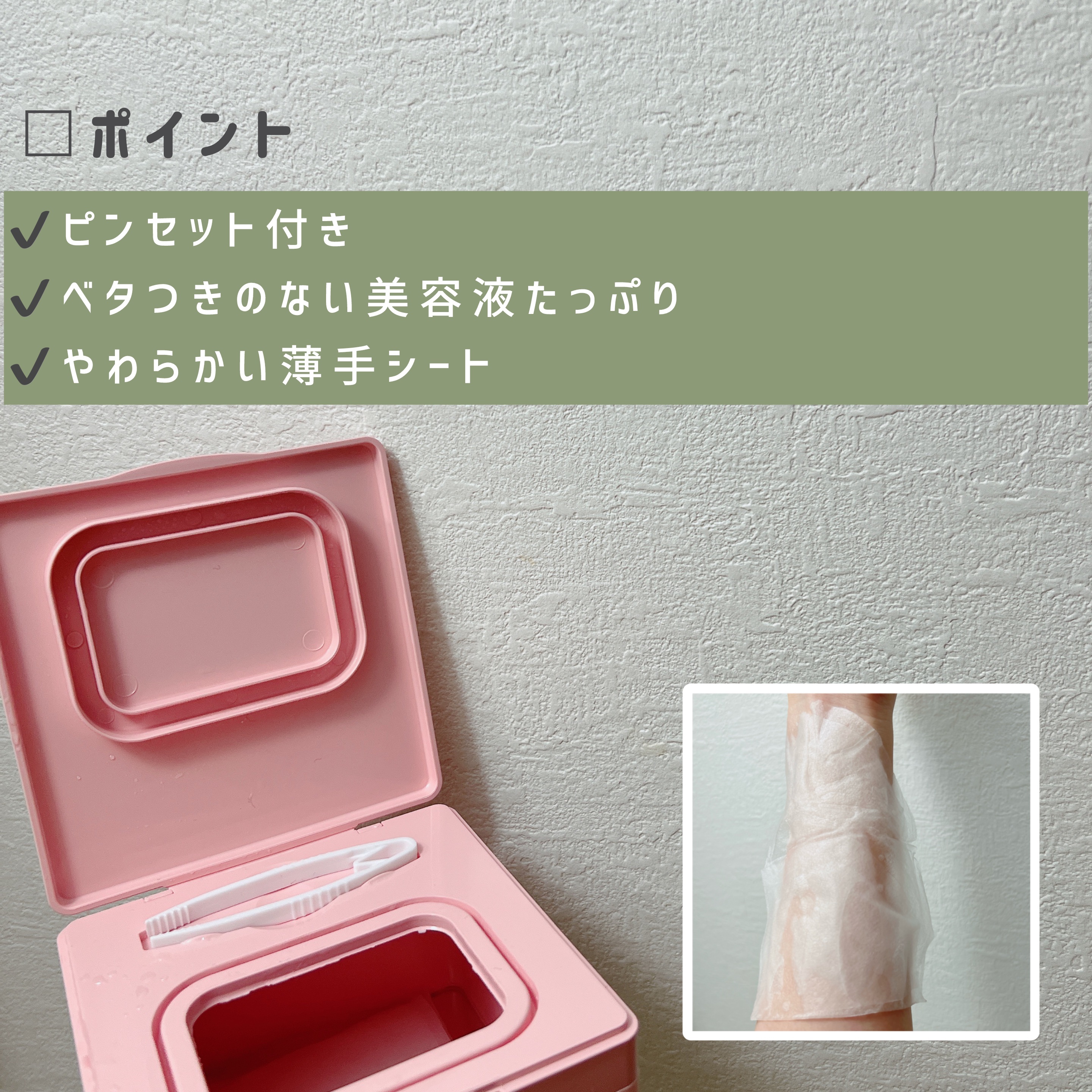 | パックに切れ目がたくさんあり、 肌にピタッと貼りやすかったです! | 詳細を見る | ||