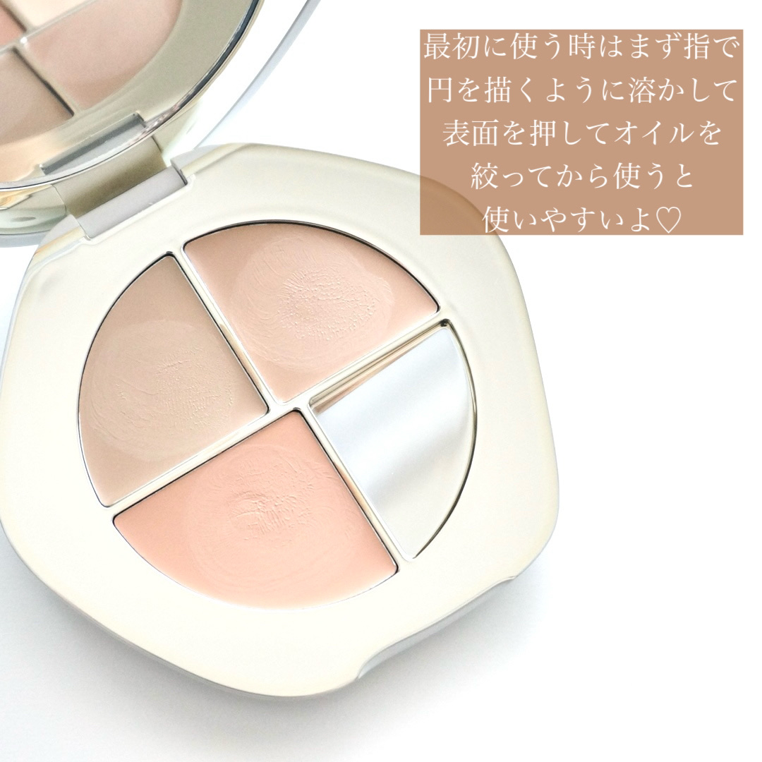 付属のブラシがとっても使いやすいところ! ブラシに加えてチップも付属されていてクマはもちろんニキビ跡や小さなシミ小鼻の赤みや口角のくすみなどなどピンポイントのお悩みにめちゃくちゃ使いやすい✨ 4色を混ぜて使うといろんな肌トーンやあらゆるお悩みをしっかりカバー! ただ4色を混ぜるだけでいつの間にか自分のお肌に合う色が完成!作るのも全然難しくないですよ😘👍 このコンシーラーは乾燥肌の私でもそういったことが全くないところも推しです💓