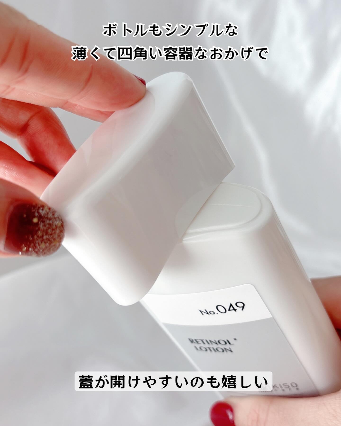 KISO スーパーリンクルローション VAはレチノール配合の化粧水。見た目に驚いたのを覚えています。だってかなりスリムなパッケージなんですもの。 肌にハリを与える・肌荒れを防ぐ・くすみを解消・若々しい弾力のある肌へ・キメの整った肌へ・透明感のある肌へといった年齢を感じる肌悩みに嬉しい成分であることには違いないから、上手くスキンケアに取り入れるのは賢い選択かも。 匂いがなく重さがないから、使いやすさもあり、レチノールによる刺激らしい刺激もなく普通に使えたので個人的には大丈夫でした。