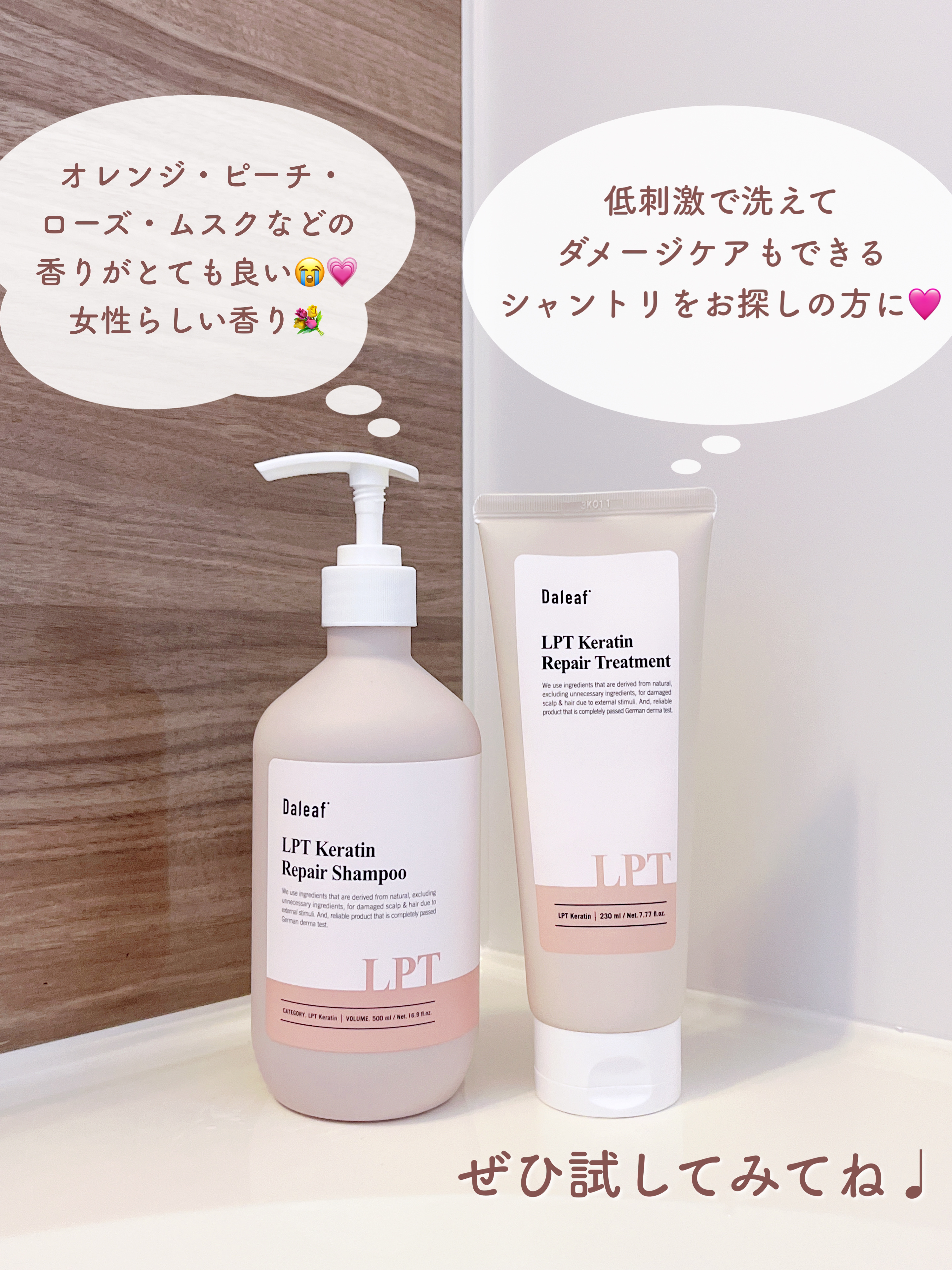 ハイダメージヘアケア💗私の最近おすすめシャントリはこれ💗❤︎︎︎︎❤︎DaleafLPTケラチンリペアシャンプーLPTケラチンリペアトリートメント❤︎︎︎︎❤︎髪の毛にLPTタンパク質をたっぷりと満たしサラツヤ髪に✨お家でできるヘアエステ🏡⋆...