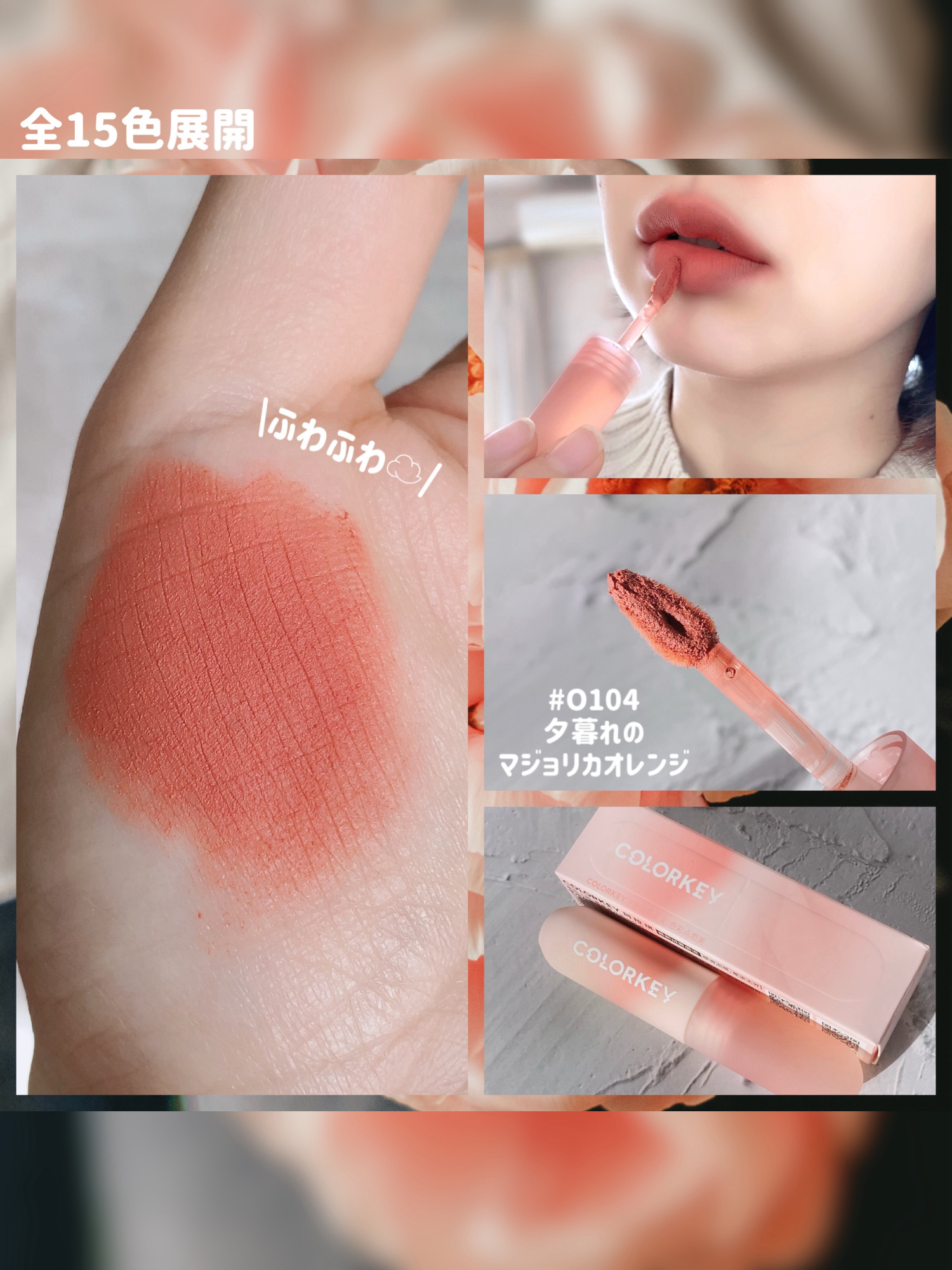 - 柔らかくて滑らか ムースのように軽くてふんわりとした塗り心地 高発色なのに軽いテクスチャー しっかり発色だけどぼかしやすい、軽いテクスチャーで唇を包み込むように密着 長持ちで乾燥しにくい ふんわりしっとりなムース質感で乾燥しにくく、潤いをキープ
