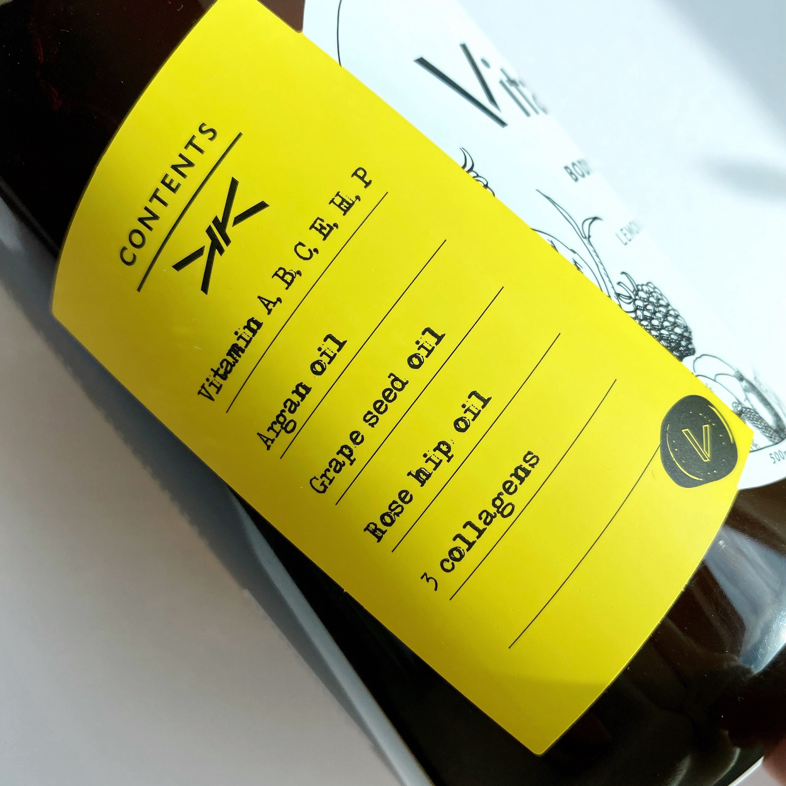 - 水、ラウリン酸、ミリスチン酸、水酸化K、ラウリルベタイン、グリセリン、コカミドDEA、香料、ラウラミドDEA、BG、グルコシルヘスペリジン、アセチルヒアルロン酸Na、PCA-Na、シロキクラゲ多糖体、パルミチン酸アスコルビルリン酸3Na、リンゴ果実培養細胞エキス、アルギニン、イチゴ果実エキス、アスパラギン酸、PCA、チャ乾留液、チョウジエキス、ライム果汁、チャ葉エキス、ビワ葉エキス、オレンジ果汁、グリシン、アラニン、アセロラ果実エキス、クダモノトケイソウ果実エキス、ヒアルロン酸Na、レモン果汁、ウコン根茎エキス、セリン、バリン、キイチゴエキス、イソロイシン、トレオニン、プロリン、グレープフルーツ果実エキス、サンザシエキス、ナツメ果実エキス、リンゴ果実エキス、サクシノイルアテロコラーゲン、ヒスチジン、フェニルアラニン、ブドウ果実細胞エキス、ユズ果実エキス、オリゴペプチド-20、イソマルト、加水分解ヒアルロン酸、加水分解コラーゲン、水溶性コラーゲン、パンテノール、ビオチン、アボカド油、アルガニアスピノサ核油、カニナバラ果実油、シア脂、ブドウ種子油、パルミチン酸レチノール、セラミドNP、ステアリン酸、ラウリン酸BG、乳酸Na、アルガニアスピノサカルス培養エキス、ヒドロキシプロピルメチルセルロース、キサンタンガム、ココイルグリシンNa、ポリソルベート20、レシチン、エタノール、コーン油、クエン酸、テトラヘキシルデカン酸アスコルビル、トコフェロール、安息香酸Na
