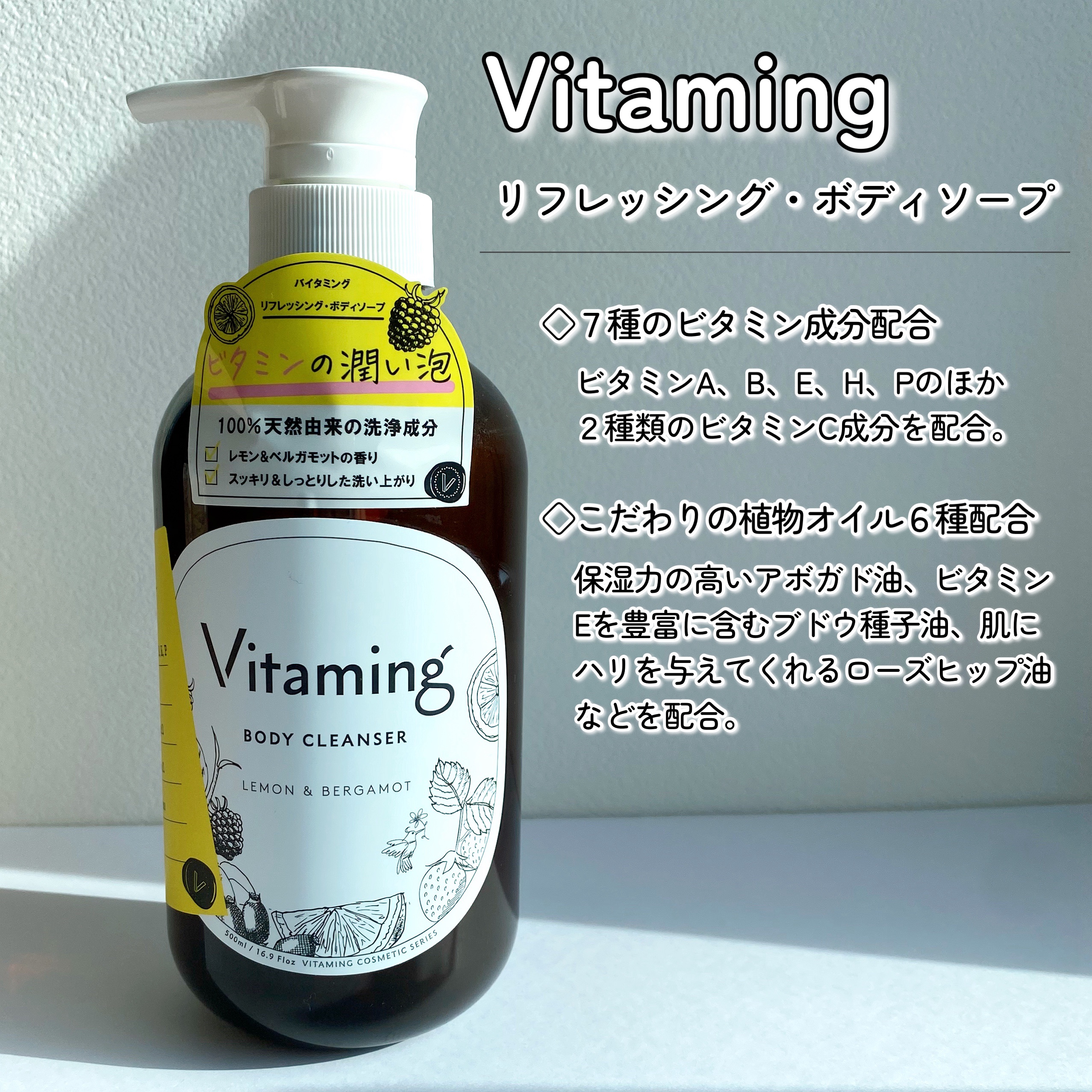 商品詳細情報Vitaming リフレッシングボディソープ(レモン&ベルガモットの香り)