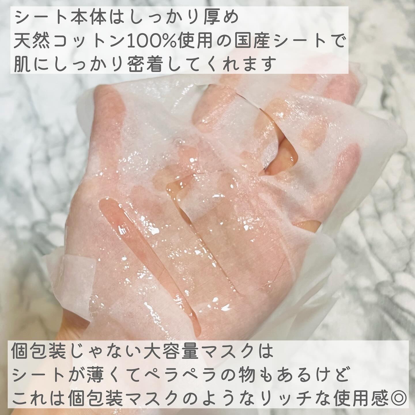 | マスクは厚みがあり、1枚1枚美容液がしっかり染み込んでいる◎ 顔に付けるとしっかりフィット! | 詳細を見る | |