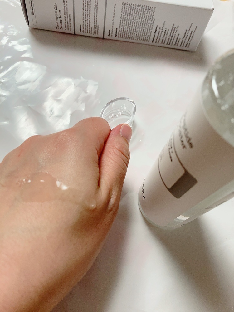 みずみずしい刺激ゼロのブースターでさっぱりとしているので夏にぴったりの商品です✨ 6種類のペプチドが弾力・キメ・毛穴・皮脂・くすみ・鎮静・シワなどさまざまな肌の悩みを同時に解決してくれる万能ブースターセラムで、皮膚1次刺激テスト済なので敏感肌でも刺激なく安心して使えます🙆🏻♀️✨ 実際にこのセラムを使ってニキビ跡が少しずつ薄く目立たなくなってきたのを実感しました‼️