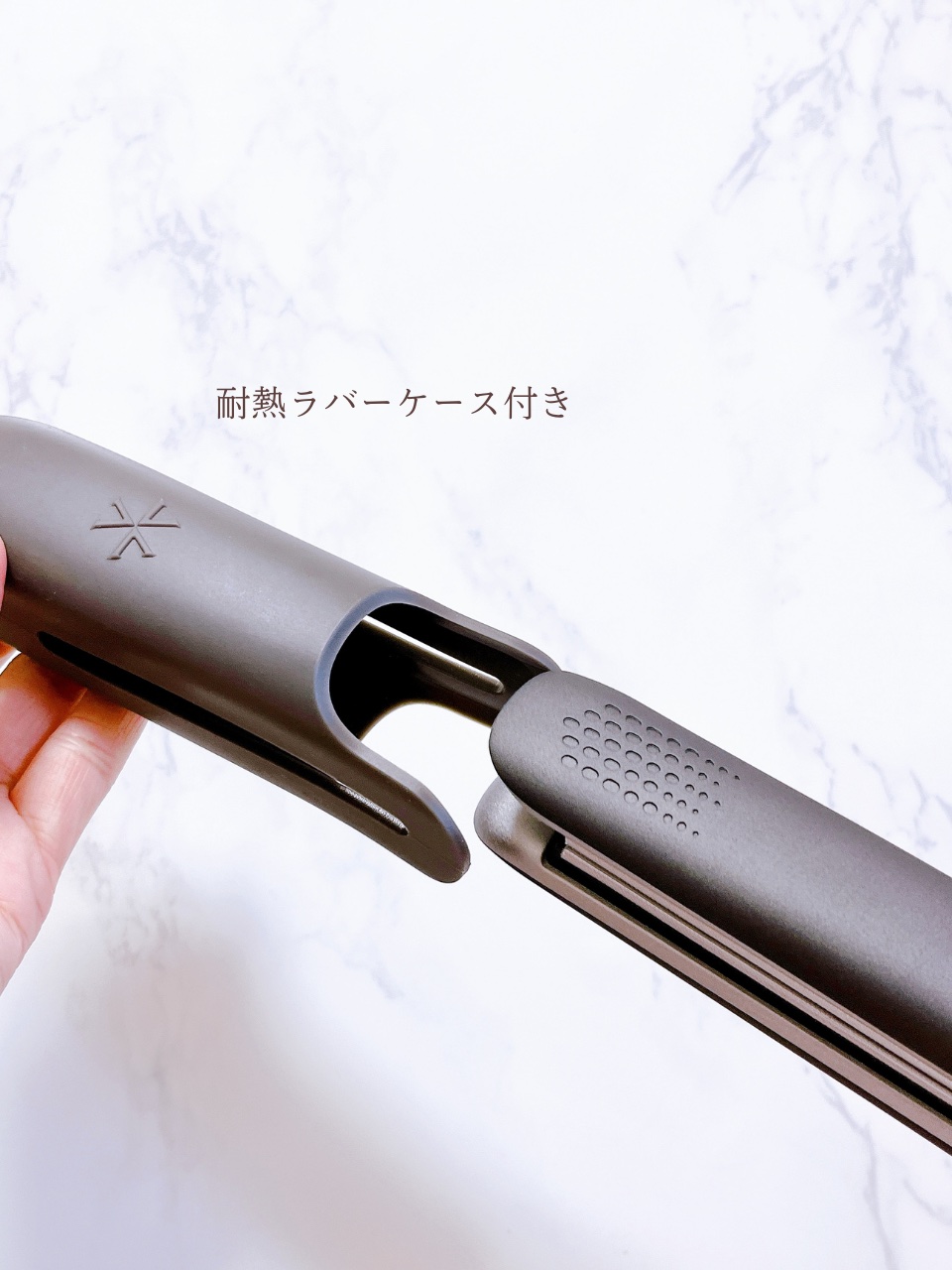 こちらはモイスティックプレートとというプレートを搭載しているので摩擦ダメージには良いとのこと◎ 温度は140℃〜20℃ずつ上がってMAXは220℃です! あまり温度は上げたくなかったですが180℃にしたら髪がまとまる時間が早くなりました◎ 耐熱カバーが付いていて持ち運びや熱を冷ます時間が無い時にも◎ 旅行にも持っていきましたがサイズも大きすぎ無いのが◎