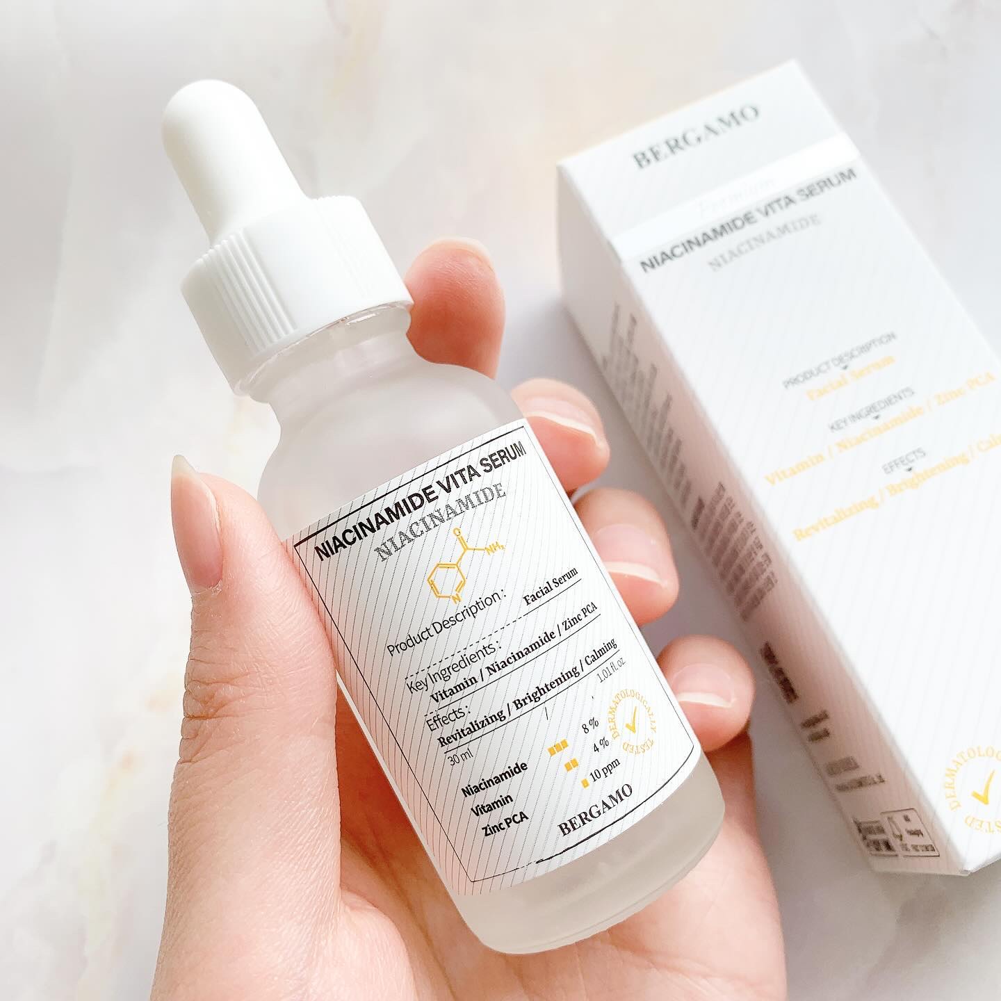 美白に効果的な「ナイアシンアミド」8%と「ベルガモビタミンコンプレックス」4%の計12%のビタミンを配合したヴィーガンのビタセラム💛 人工的な着色料・香料は全く入ってないので安心して使えるのも嬉しい🤍 厳しい審査で有名なイタリアのヴィーガンV-Label(ブイレーベル)とドイツ肌臨床センターDERMATEST(ダーマテスト)の2つの審査&安全検証を完了してます。