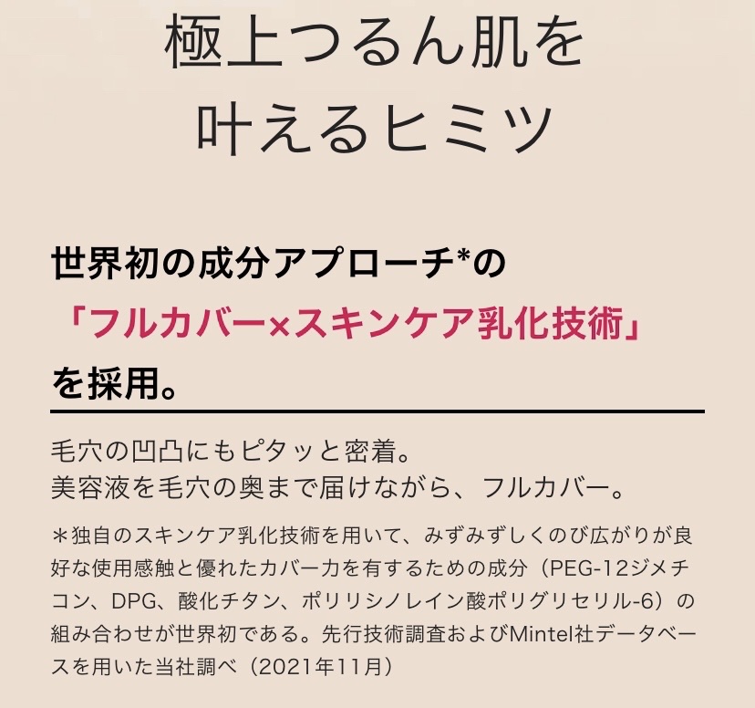 13時間化粧もち*データ取得済みで、時間が経ってもくずれにくいです✨ 毛穴や色ムラをしっかりカバーして、フルカバーを叶えます🌟 美容液生まれのファンデーションで、角層のすみずみまでうるおいを届けます💧