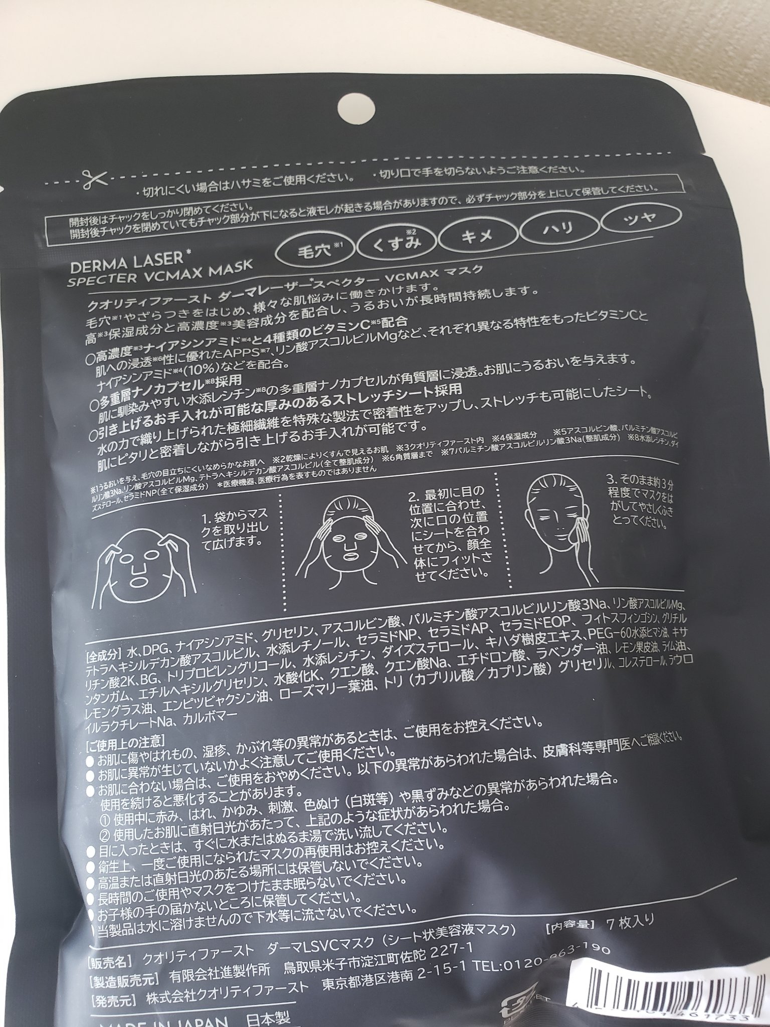 商品詳細情報クオリティファースト ダーマレーザースペクター VCMAX マスク