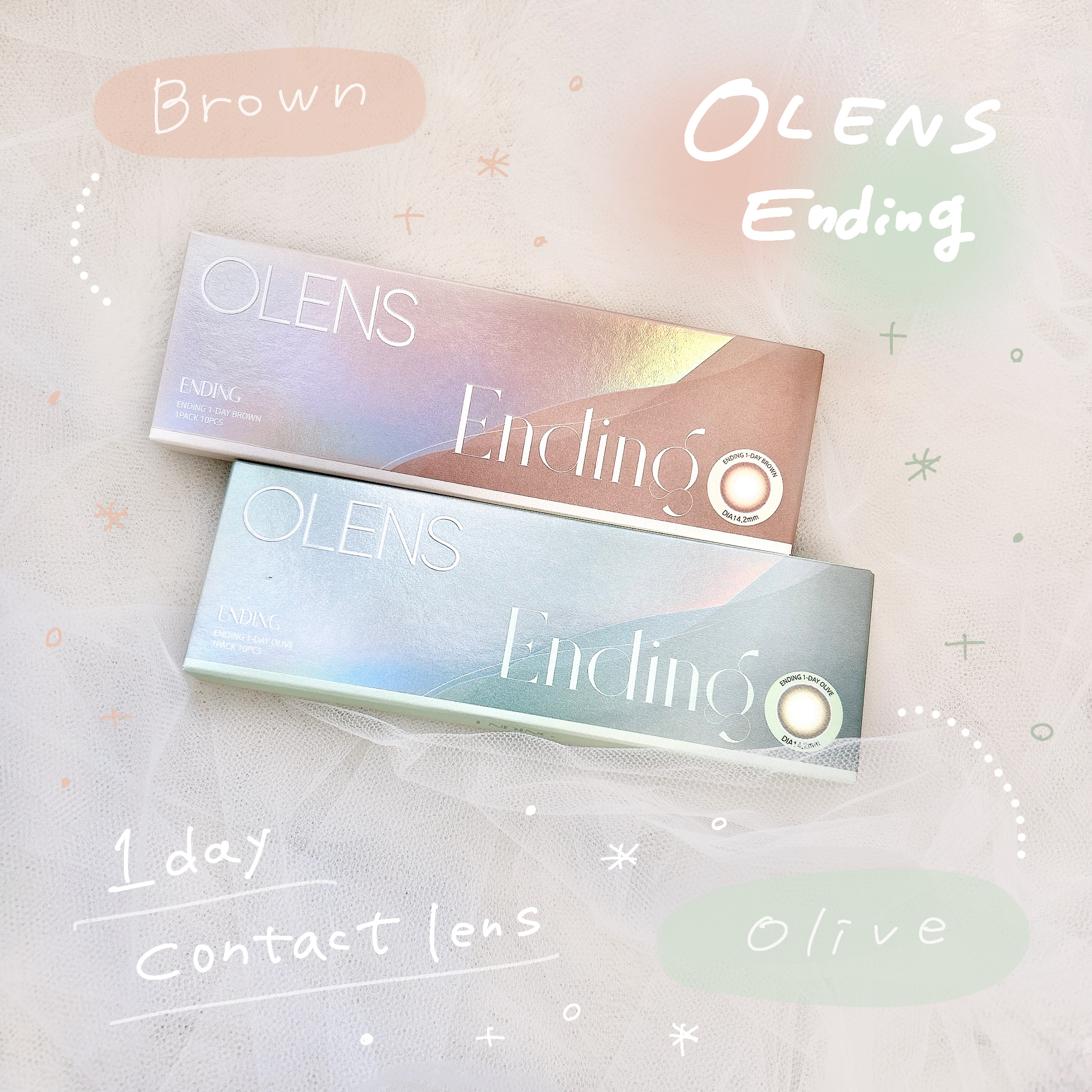 - 韓国カラコン業界の人気ブランド『OLENS(オーレンズ)』の日本正式承認商品シリーズ。世界中から注目を浴びるグループ「NewJeans (ニュージーンズ)」がイメージモデル。3トーンブレンディングの発色がふわっと優しく溶け込みじゅんわり溶け込む「垢抜けカラコン」。ふわっとナチュラルに溶け込む発色とはっきりしたサークルラインがバランス良くすっきりとした目元を演出してくれます。鮮明で透明感のあるデザインなので、黒目小さめのナチュラルに盛れたい方におすすめです! 韓国カラコン業界のトップブランド『OLENS(オーレンズ)』の日本正式承認商品シリーズ。 ■OLENS Ending(オーレンズエンディング) ・枚数:1箱10枚入り ・カラー :全3色 ■使い方 コンタクトレンズは高度管理医療機器です。必ず眼科医の処方に従って購入してください。 ■使用上の留意事項 コンタクトレンズは高度管理医療機器です。眼科医の指導に従い装用期間を厳守し、正しくお使いください。眼の定期検査を必ず受けてください。添付文書を必ず読み、取扱方法、装用時間を守って正しくお使いください。少しでも異常を感じたら、直ちに眼科医の検査を受けてください。