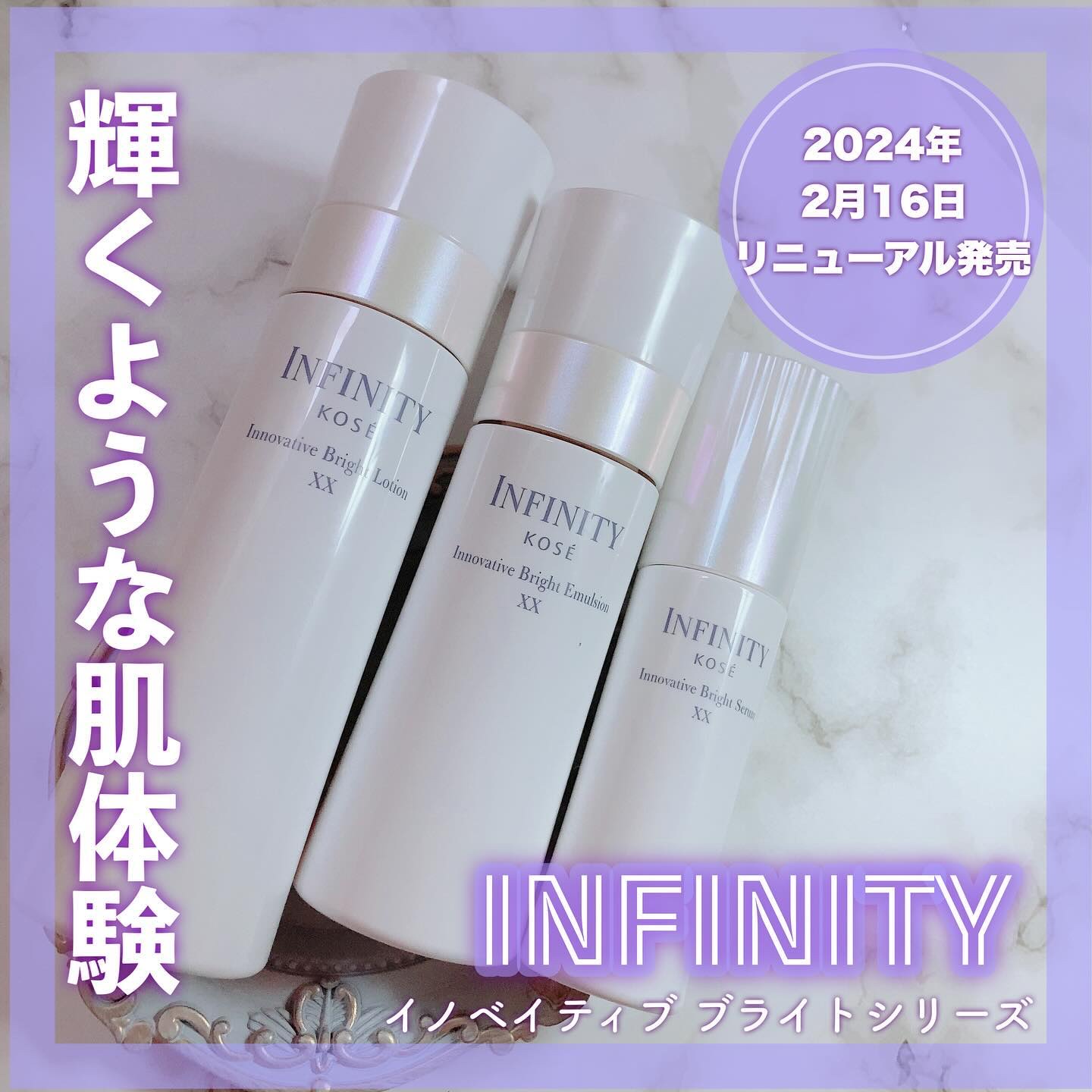 コウジ酸配合で、美白ケア&エイジングケア!! #インフィニティ #イノベイティブブライト ローション XX 年齢を重ねるたびに難しくなる大人の美白に着目✨ シミの悩み点へのアプローチに加え顔全体の面でも光を回すような美白ケアを実現。 特にエマルジョンが気に入りました〜 濃密!! そんなエマルジョン。