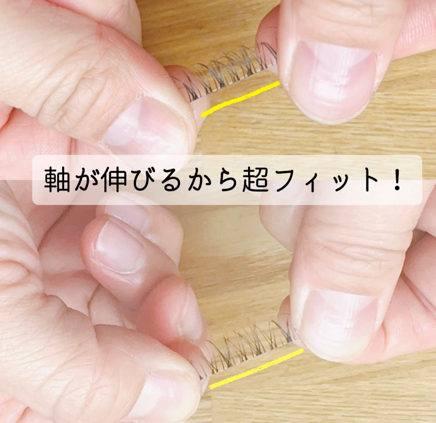 - これ、ほぼマツエク✨ 新発想💡軸が伸縮する ”超フィット”つけまつげ 細い極柔軟な軸が、伸縮してまぶたにフィット 圧倒的なフィット感! 想像以上のつけ心地💕 試して実感してください👀