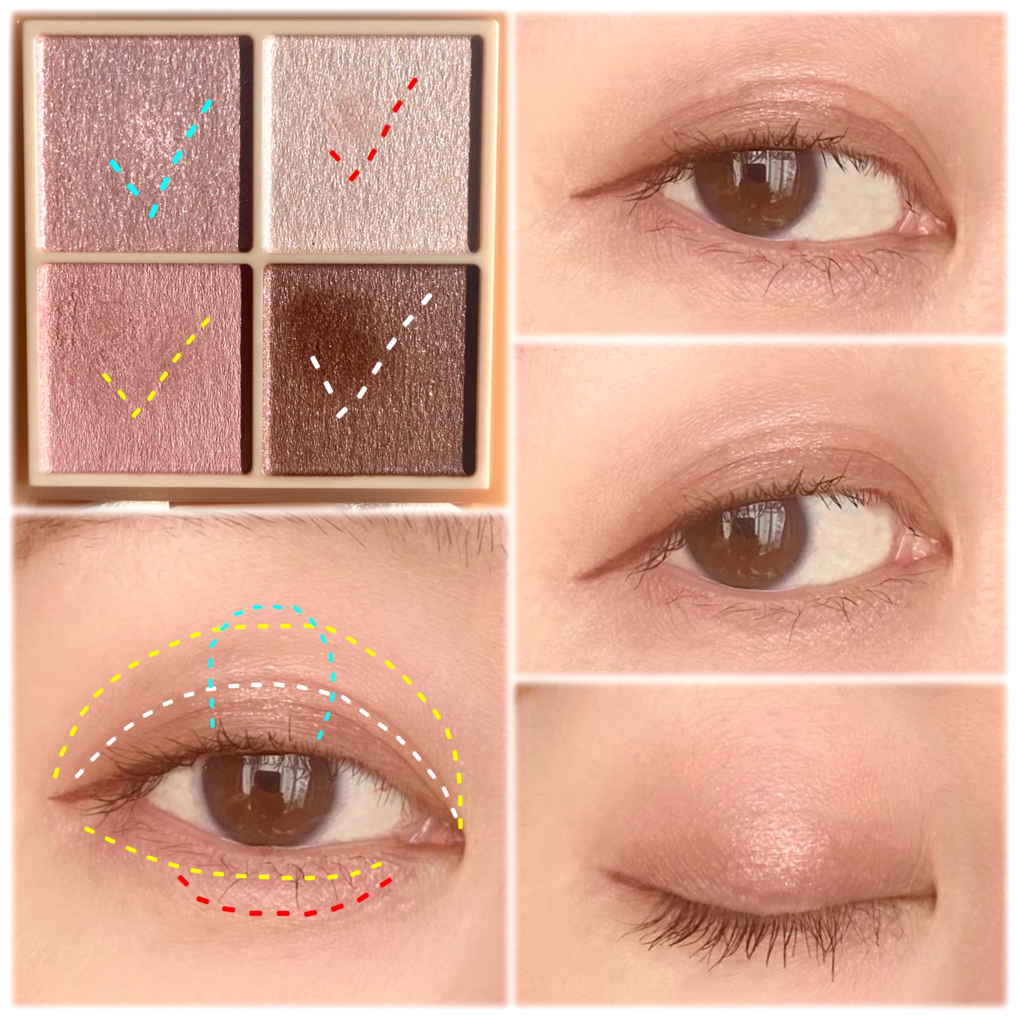 - ラメ・パール・マット3質感の4色アイシャドウ。 肌馴染みの良いベージュを基調としたカラー。ラメ・パール・マットの3質感を重ねて、自然にまぶたを強調し奥行のある大きな目元へ。 しっとり溶け込むような柔らかなパウダーなので、スルスル伸びてまぶたにピタッと密着。保湿成分(スクワラン・ホホバ種子油)配合。