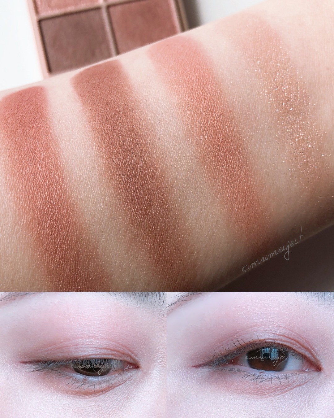 でもこれが意外と使いやすくて、 上段はベージュ・ピンク・グレーの色が入っているので気分によってニュアンスを替えられるし、 下段の明るいグレーはベースに使うと透明感が出てきてくれます。 かわいいと格好良いの間の、 絶妙な塩梅のグレーメイクができるところがすごく気に入っているところです。 「グレーオンリーのパレットはちょっと不安だよ…」 という場合には、 同じrom&ndでも韓服エディションN02番や hinceの04番のパレットでも グレーメイクを楽しめると思います。