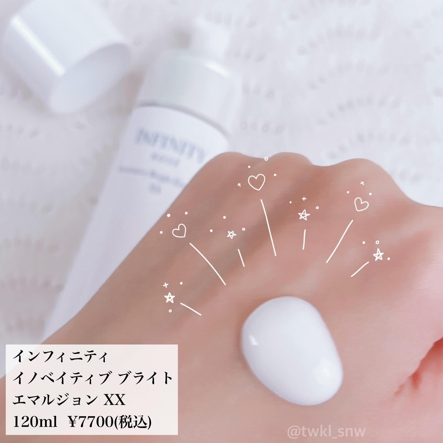 コウジ酸配合で、美白ケア&エイジングケア!! #インフィニティ #イノベイティブブライト ローション XX 年齢を重ねるたびに難しくなる大人の美白に着目✨ シミの悩み点へのアプローチに加え顔全体の面でも光を回すような美白ケアを実現。 特にエマルジョンが気に入りました〜 濃密!! そんなエマルジョン。