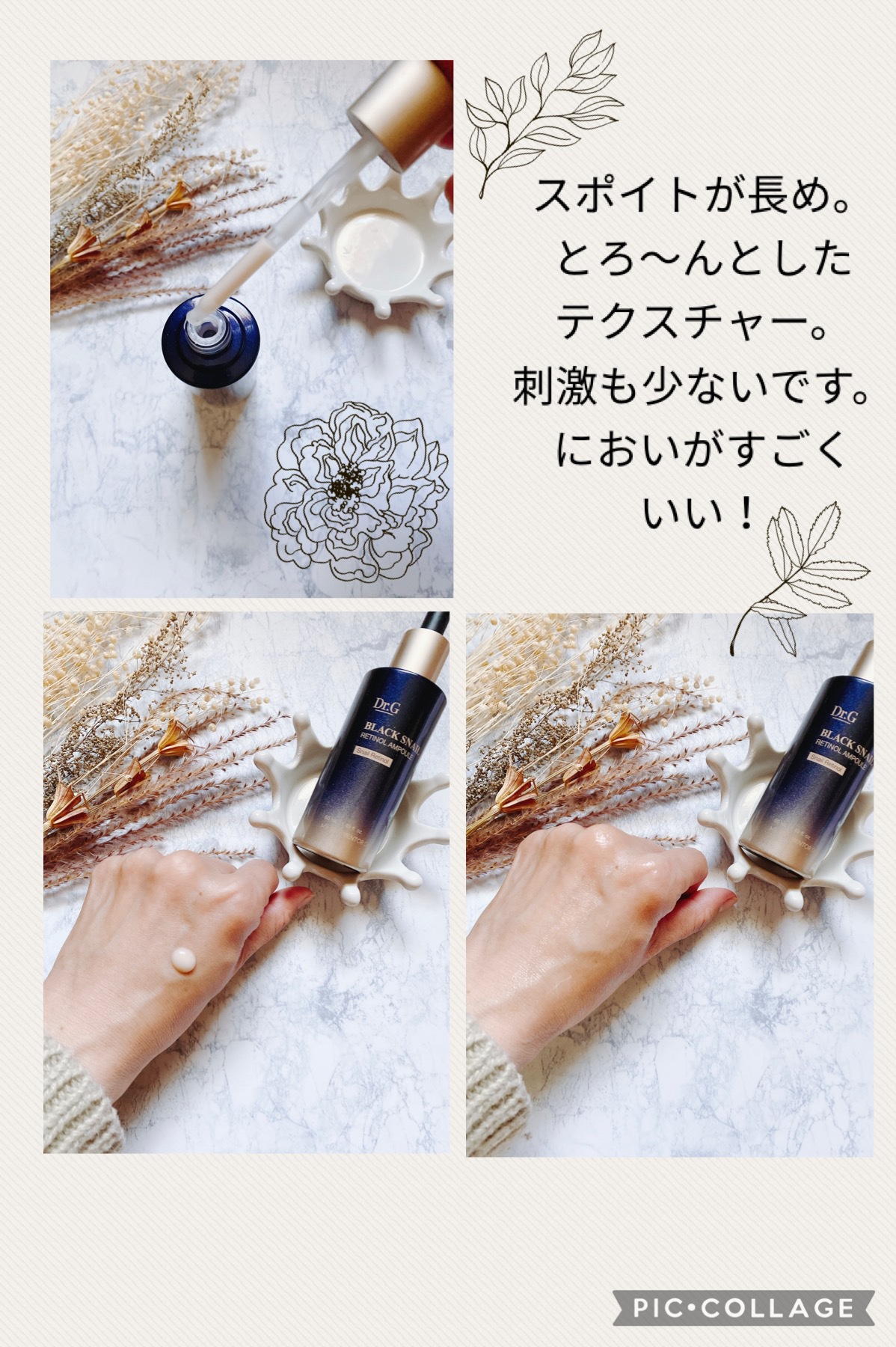 - ブラックスネイル*とレチノール*を配合した、若々しい肌印象に導く美容液です。 Dr.Gのレチノールは独自の成分である、ブラックスネイルレチノール*を使っています! 肌に高い保湿感を与え、肌のキメを整え、弾力やハリのケアを助けるだけでなく、肌の乾燥くすみをケアし、明るい印象のぷるんっとハリのある肌に導きます。 *整肌成分