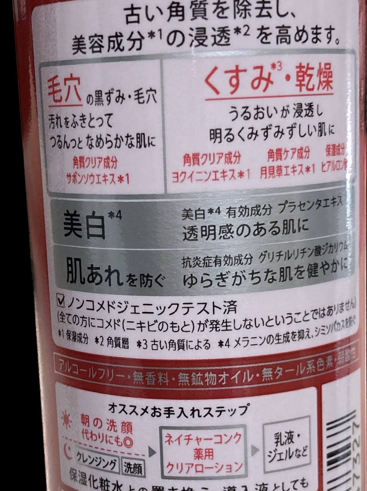 | 化粧水ランキング第86位 | コットンには毛穴の汚れや余分な油分がしっかりと付いていますが、肌はしっとりと潤っています。 | 詳細を見る | |