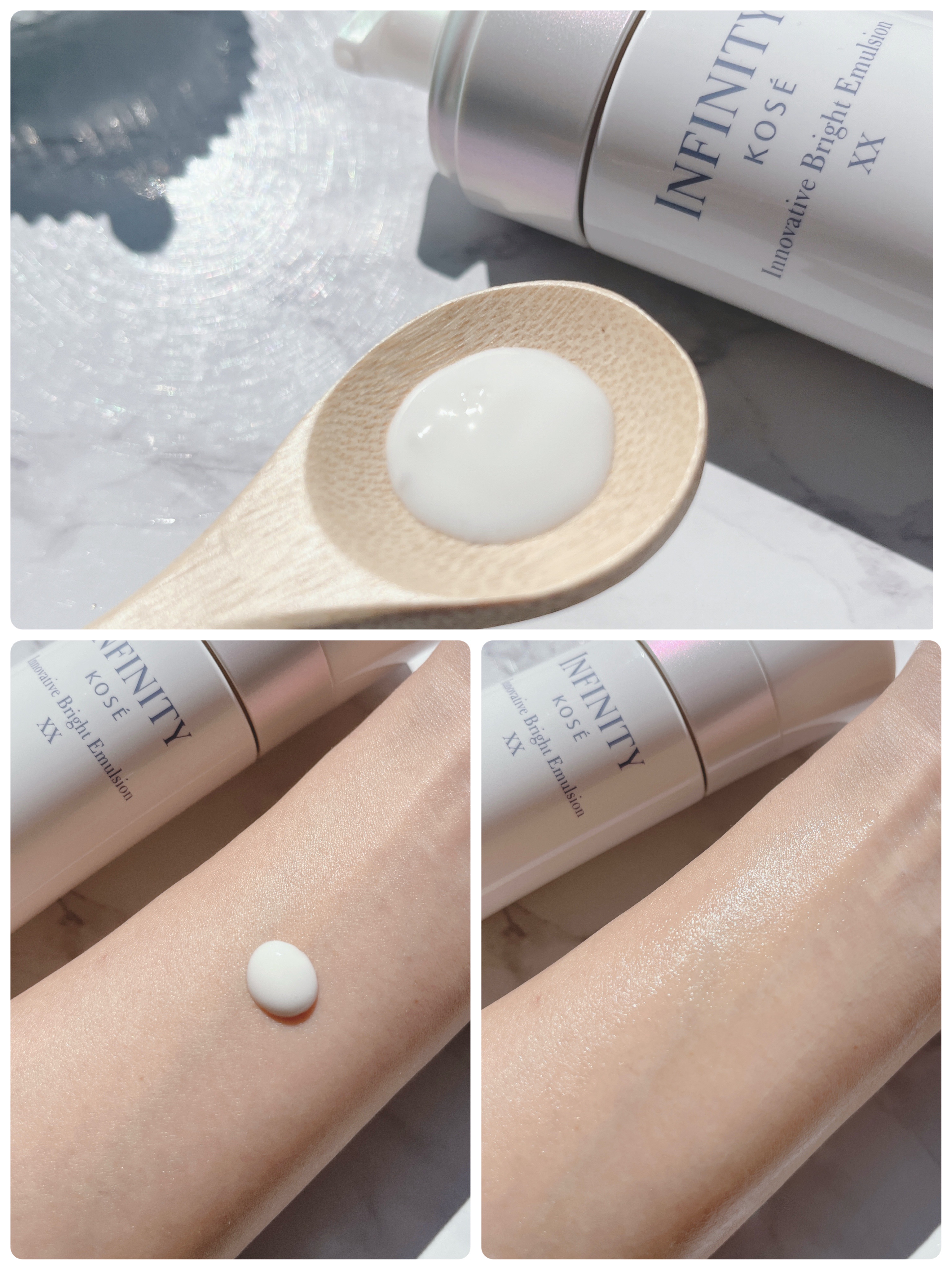 コウジ酸配合で、美白ケア&エイジングケア!! #インフィニティ #イノベイティブブライト ローション XX 年齢を重ねるたびに難しくなる大人の美白に着目✨ シミの悩み点へのアプローチに加え顔全体の面でも光を回すような美白ケアを実現。 特にエマルジョンが気に入りました〜 濃密!! そんなエマルジョン。