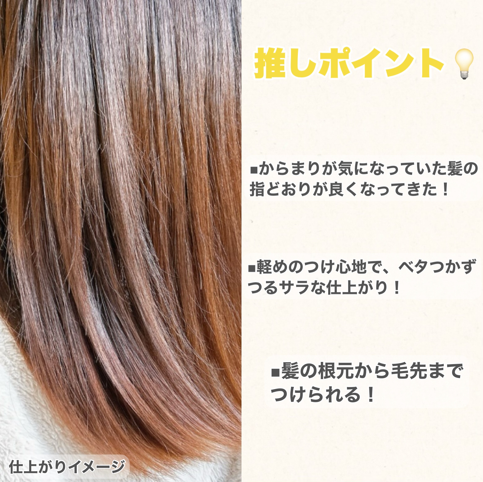 | 乾かすとつるんとした手触りの髪になるのも良き◎ウォーターなので、使用感が軽いところも良いな〜〜と思いました | 詳細を見る | ||