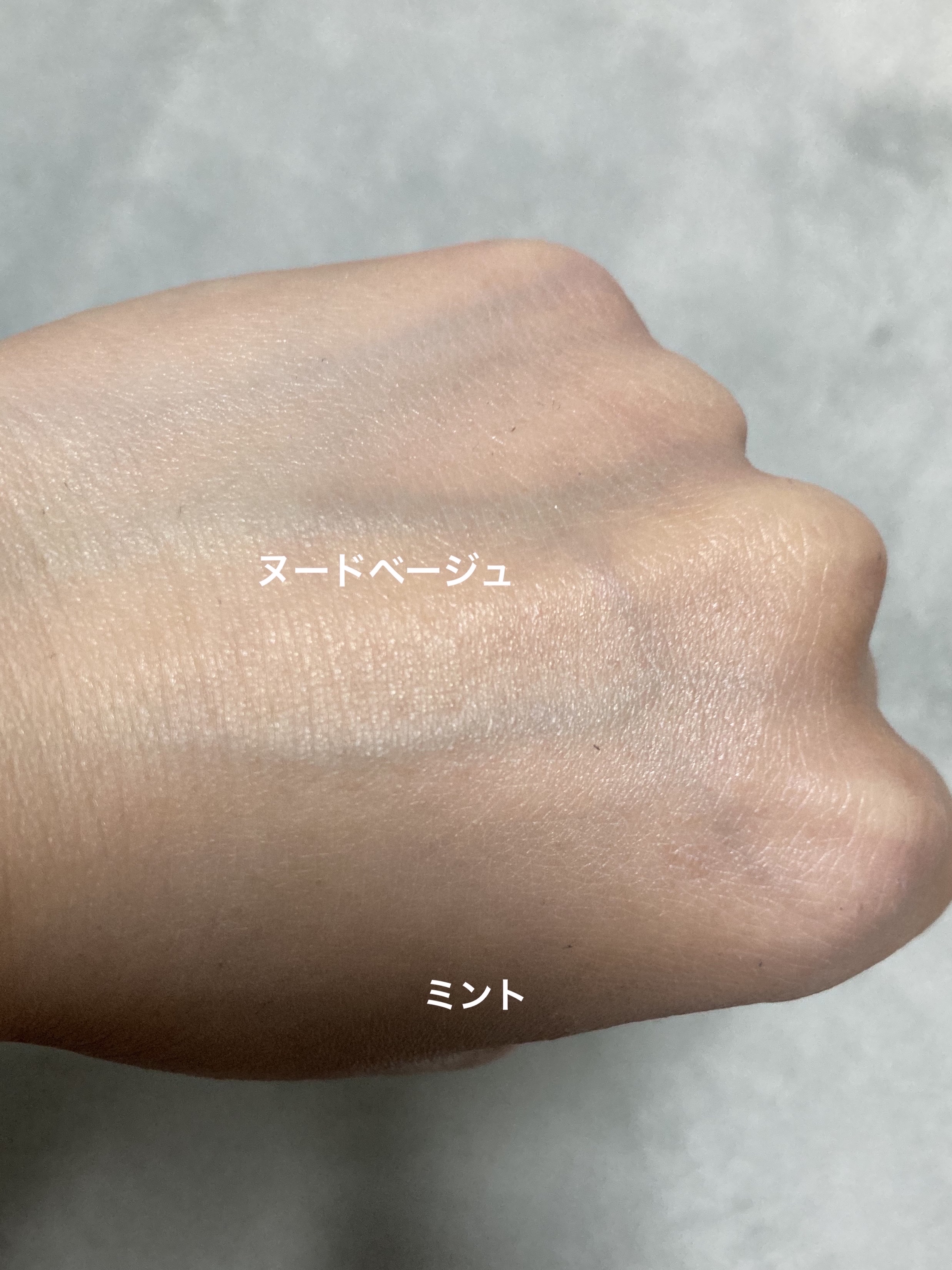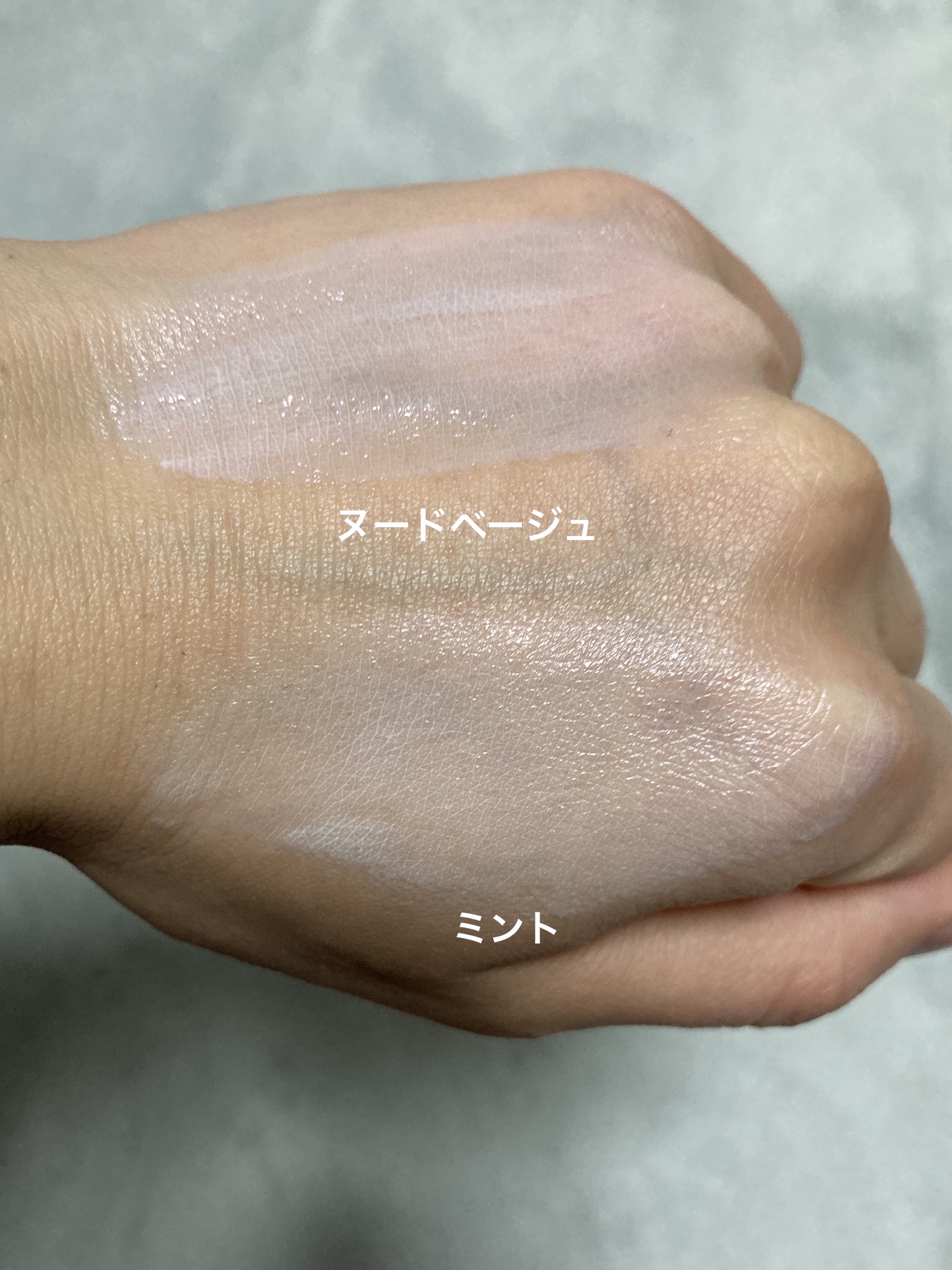 見た目はメロン色🍈 私は冬は潤いが足りなくなるので、肌が汗をかいてオイリーになりがちな夏用として使用しています🙆♀️ こちらだとあんまりベタベタになりません! カラバリあるので、部分的に使い分けて塗るのもアリですね👍✨