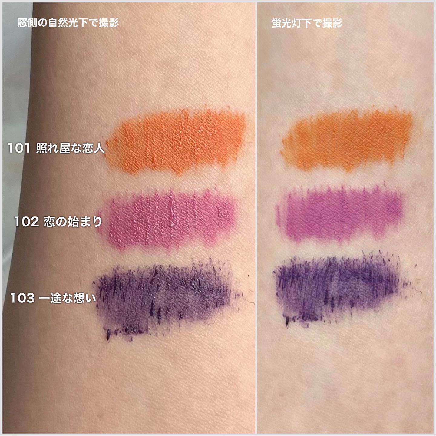 - <01 ブラック> 水添ポリイソブテン・イソドデカン・トリメチルシロキシケイ酸・マイクロクリスタリンワックス・キャンデリラロウ・パルミチン酸デキストリン・ポリメチルシルセスキオキサン・ジステアルジモニウムヘクトライト・イソステアリン酸デキストリン・シリカ・(アクリレーツ/VA)コポリマー・タルク・パラフィン・レーヨン・オリーブ果実油・ゴマ種子油・サフラワー油・シア脂・トコフェロール・ヒマワリ種子油・ホホバ種子油・BHT・(エチレン/プロピレン)コポリマー・カルナウバロウ・スクワラン・ステアリン酸グリセリル(SE)・セスキオレイン酸ソルビタン・ナイロン-6・ポリエチレン・ポリプロピレン・ラウロイルリシン・レシチン・水添マイクロクリスタリンワックス・炭酸プロピレン・フェノキシエタノール・カーボンブラック・酸化チタン <02 ブラウン> 水添ポリイソブテン・イソドデカン・トリメチルシロキシケイ酸・マイクロクリスタリンワックス・キャンデリラロウ・パルミチン酸デキストリン・ポリメチルシルセスキオキサン・ジステアルジモニウムヘクトライト・イソステアリン酸デキストリン・シリカ・(アクリレーツ/VA)コポリマー・パラフィン・レーヨン・オリーブ果実油・ゴマ種子油・サフラワー油・シア脂・トコフェロール・ヒマワリ種子油・ホホバ種子油・BHT・(エチレン/プロピレン)コポリマー・カルナウバロウ・スクワラン・ステアリン酸グリセリル(SE)・セスキオレイン酸ソルビタン・ナイロン-6・ポリエチレン・ポリプロピレン・ラウロイルリシン・レシチン・水添マイクロクリスタリンワックス・炭酸プロピレン・フェノキシエタノール・酸化チタン・酸化鉄 <101 照れ屋な恋人> 水添ポリイソブテン・イソドデカン・トリメチルシロキシケイ酸・マイクロクリスタリンワックス・キャンデリラロウ・パルミチン酸デキストリン・ポリメチルシルセスキオキサン・ジステアルジモニウムヘクトライト・イソステアリン酸デキストリン・シリカ・(アクリレーツ/VA)コポリマー・パラフィン・レーヨン・オリーブ果実油・ゴマ種子油・サフラワー油・シア脂・トコフェロール・ヒマワリ種子油・ホホバ種子油・BHT・(エチレン/プロピレン)コポリマー・カルナウバロウ・スクワラン・ステアリン酸グリセリル(SE)・セスキオレイン酸ソルビタン・タルク・ナイロン-6・ポリエチレン・ポリプロピレン・ラウロイルリシン・レシチン・水酸化Al・水添マイクロクリスタリンワックス・炭酸プロピレン・フェノキシエタノール・グンジョウ・マイカ・酸化チタン・酸化鉄・黄4・赤202 <102 恋の始まり> 水添ポリイソブテン・イソドデカン・トリメチルシロキシケイ酸・マイクロクリスタリンワックス・キャンデリラロウ・パルミチン酸デキストリン・ポリメチルシルセスキオキサン・ジステアルジモニウムヘクトライト・イソステアリン酸デキストリン・シリカ・(アクリレーツ/VA)コポリマー・パラフィン・レーヨン・オリーブ果実油・ゴマ種子油・サフラワー油・シア脂・トコフェロール・ヒマワリ種子油・ホホバ種子油・BHT・(エチレン/プロピレン)コポリマー・カルナウバロウ・スクワラン・ステアリン酸グリセリル(SE)・セスキオレイン酸ソルビタン・ナイロン-6・ポリエチレン・ポリプロピレン・ラウロイルリシン・レシチン・水酸化Al・水添マイクロクリスタリンワックス・炭酸プロピレン・フェノキシエタノール・グンジョウ・酸化チタン・赤202 <103 一途な想い> 水添ポリイソブテン・イソドデカン・トリメチルシロキシケイ酸・マイクロクリスタリンワックス・キャンデリラロウ・パルミチン酸デキストリン・ポリメチルシルセスキオキサン・ジステアルジモニウムヘクトライト・イソステアリン酸デキストリン・シリカ・DPG・(アクリレーツ/VA)コポリマー・タルク・パラフィン・レーヨン・オリーブ果実油・ゴマ種子油・サフラワー油・シア脂・トコフェロール・ヒマワリ種子油・ホホバ種子油・BHT・(エチレン/プロピレン)コポリマー・カルナウバロウ・スクワラン・ステアリン酸グリセリル(SE)・セスキオレイン酸ソルビタン・ナイロン-6・ポリエチレン・ポリプロピレン・ラウロイルリシン・レシチン・水酸化Al・水添マイクロクリスタリンワックス・炭酸プロピレン・フェノキシエタノール・グンジョウ・マイカ・酸化チタン・酸化鉄・赤202 <01 ブラック(ゲゲゲの⻤太郎限定デザイン)> 水添ポリイソブテン・イソドデカン・トリメチルシロキシケイ酸・マイクロクリスタリンワックス・キャンデリラロウ・パルミチン酸デキストリン・ポリメチルシルセスキオキサン・ジステアルジモニウムヘクトライト・イソステアリン酸デキストリン・シリカ・(アクリレーツ/VA)コポリマー・タルク・パラフィン・レーヨン・オリーブ果実油・ゴマ種子油・サフラワー油・シア脂・トコフェロール・ヒマワリ種子油・ホホバ種子油・BHT・(エチレン/プロピレン)コポリマー・カルナウバロウ・スクワラン・ス