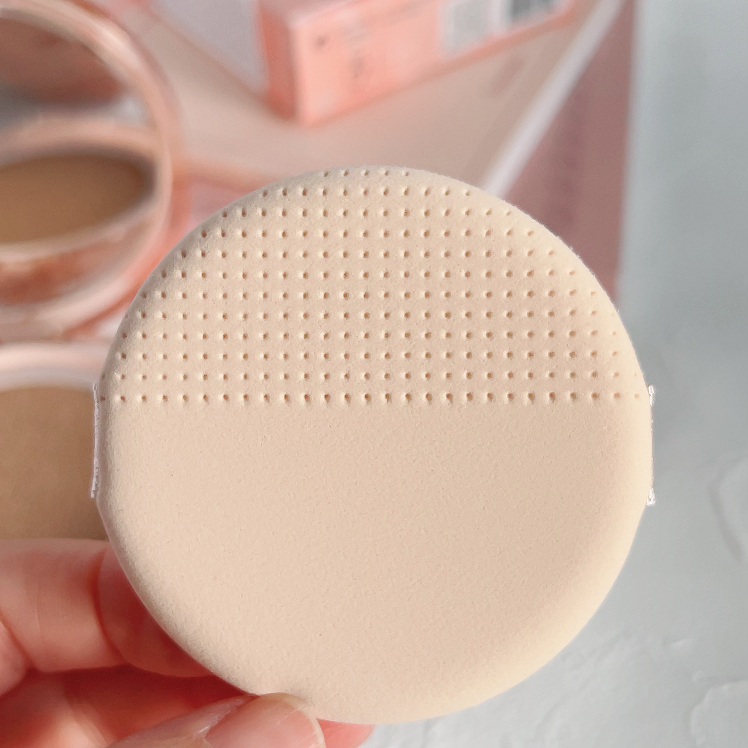 透明感のあるヌードカラーのパクトと MAKE9のロゴがかわいい💛ˎˊ˗ パフはもっちもちで 上半分にぽつぽつ小さな穴が 開いてるクッションエアセルパフが 珍しい形状☺️ さらりと軽いテクスチャーで 仕上がりはややツヤあり✨ 綺麗にカバーしてフラットな肌に してくれて満足度高い♬ SPF36 PA++ と程よいサンカット効果☀ どんな肌カラーにもナチュラルに なじみやすい単色展開で、 自称ブルベ夏の私にぴったり 合っていて毎朝愛用中♬