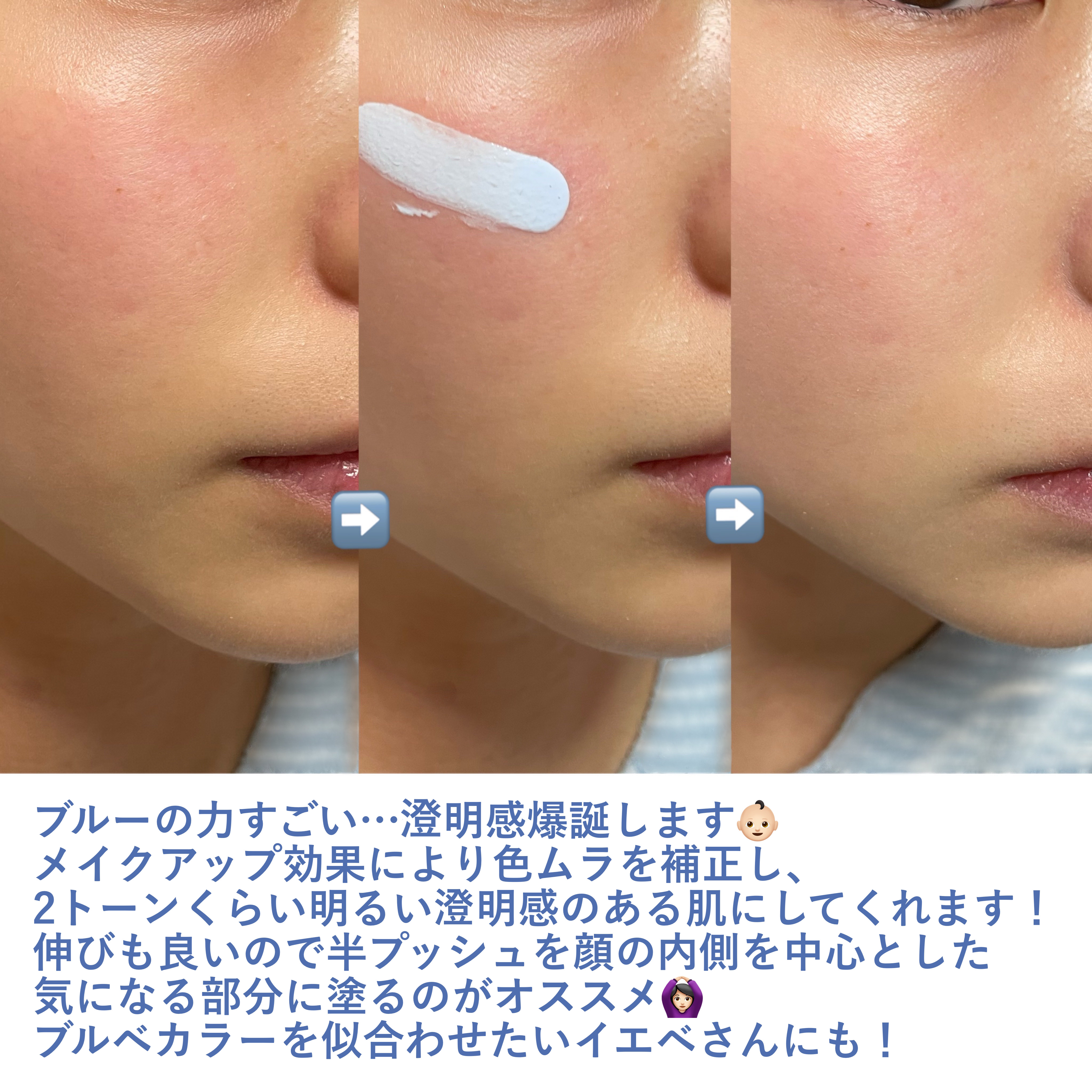 - 01|ミント…赤み、ニキビ跡をおさえて透明感。 肌悩みクリア×保湿=欠点見せずに理想肌へ 華やかでなめらかな肌トーン 02|ローズ…クスミをカバーして、血色感。 肌悩みクリア×保湿=欠点見せずに理想肌へ 華やかでなめらかな肌トーン 03|ペールブルー…黄み、にごり感をおさえて、澄んだ印象に 肌悩みクリア×保湿=欠点見せずに理想肌へ 華やかでなめらかな肌トーン