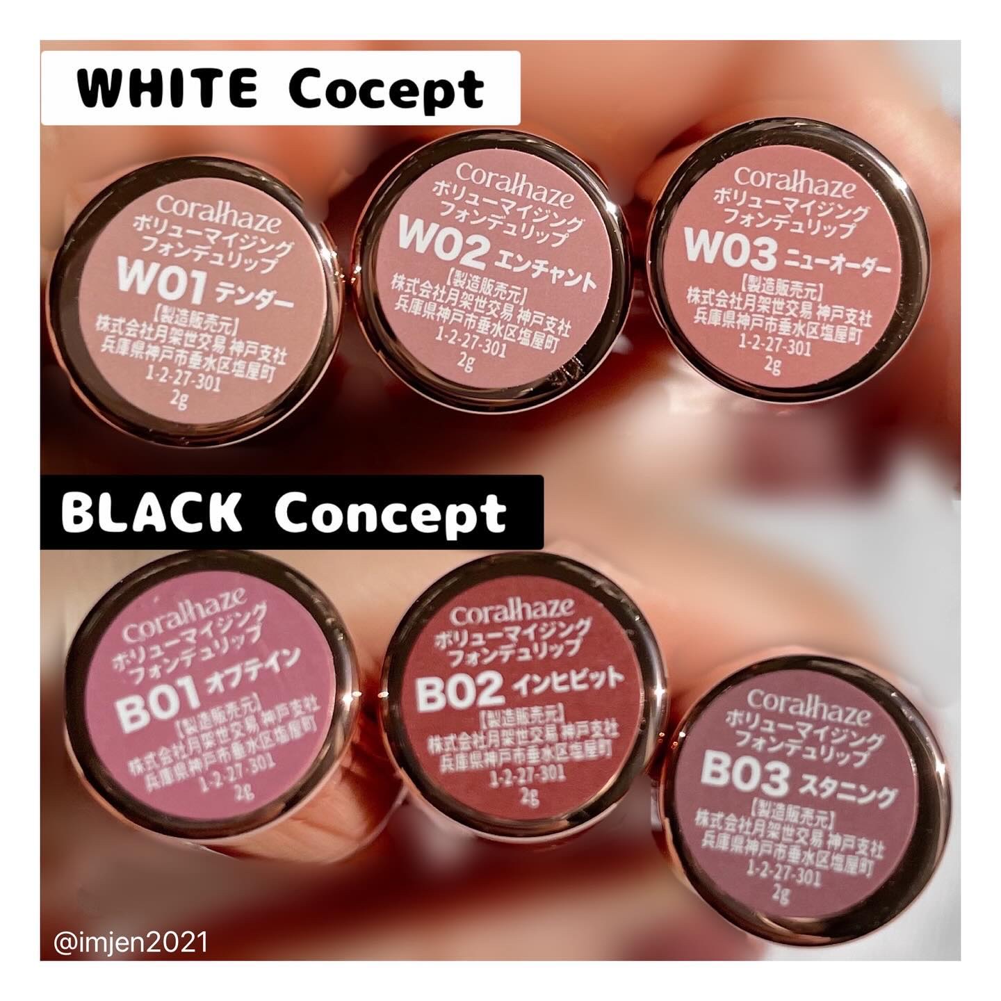 - White コンセプト / Blackコンセプトでお馴染みのCoralhazeから新たに6色追加となります。 特にBlackコンセプトに対する期待の声が寄せられていたこともあり、今回Black コンセプトから既存のBlack LineよりもさらにトーンダウンしたDark Lineが新登場。 番号の前にWが付いている商品はwhite Line、Bがついている商品はBlack Line、Dが付いている商品はDark Lineとなります。 1.唇に軽くメルティングされ蜂蜜を塗ったようなプルンとした輝きを与えます 2.プランパー成分配合でクーリング感とともにふっくらとしたボリューム、ツヤ感を与えます 3.ベタつきの少ないテクスチャーで重ね塗りしても快適に使用 4.パーソナルカラーに合わせて選べる10種類のカラー 5.高級感のあるゴールド色の容器を使用し感性的な満足感をお届けします 6.唇を保護し、保湿感を与えるスキンケア成分を配合 韓国では 「自身が持っている魅力をコーラルヘイズがより引き出す」 というパステルカラー調のコンセプトになっておりますが日本では今までの韓国コスメにはない、Black or White コンセプトになっております。 Black Lineはブラウンチョコレートを一滴垂らしたようなカラー White Lineは生クリームを一滴垂らしたようなカラー