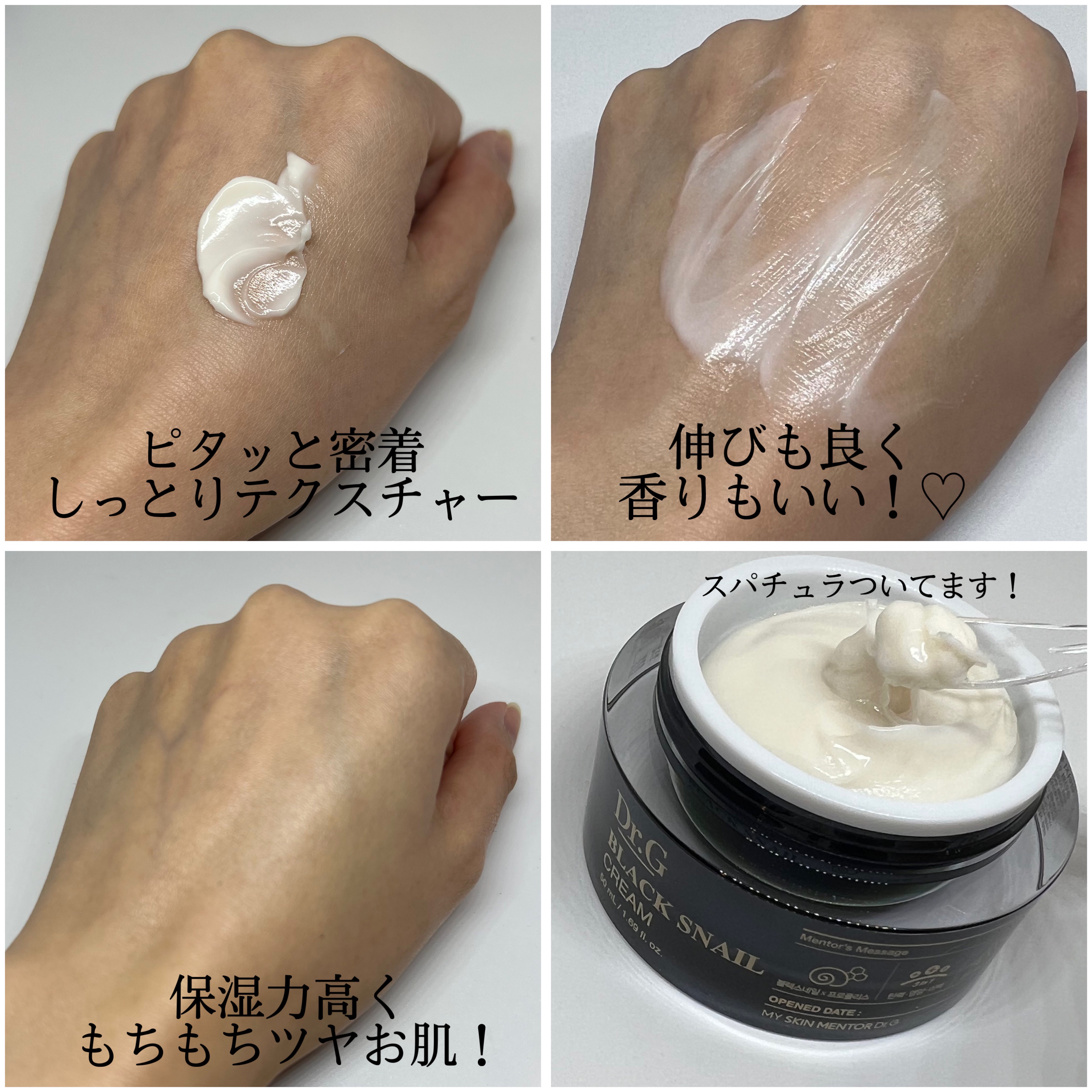 テクスチャー自体はかためなのにお肌への浸透はなめらか! ドクタージーがお肌のために考案した優れもの✨ 保湿だけでなく、美白、しわ、弾力対策にも✨ ブラックスネイルを20%&ブラックプロポリスが配合されていてアンチエイジングにぴったり🩷 ナイアシンアミドやツボクサエキスなども含まれています✨