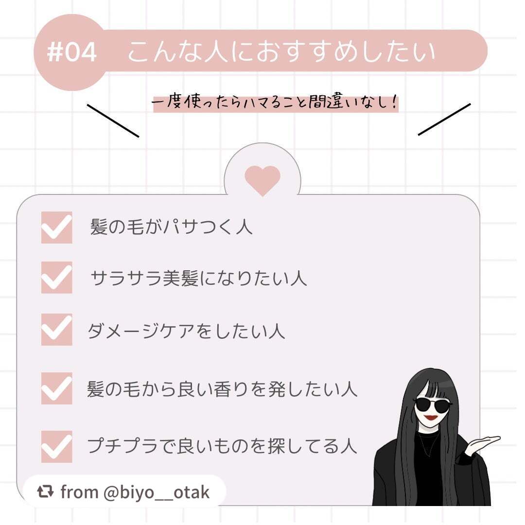 | ヘアケア・スタイリングランキング第33位 | 香りがとにかく良くて使用中も使用後も 癒される空間になるのがお気に入り🥹♡ | 詳細を見る | |