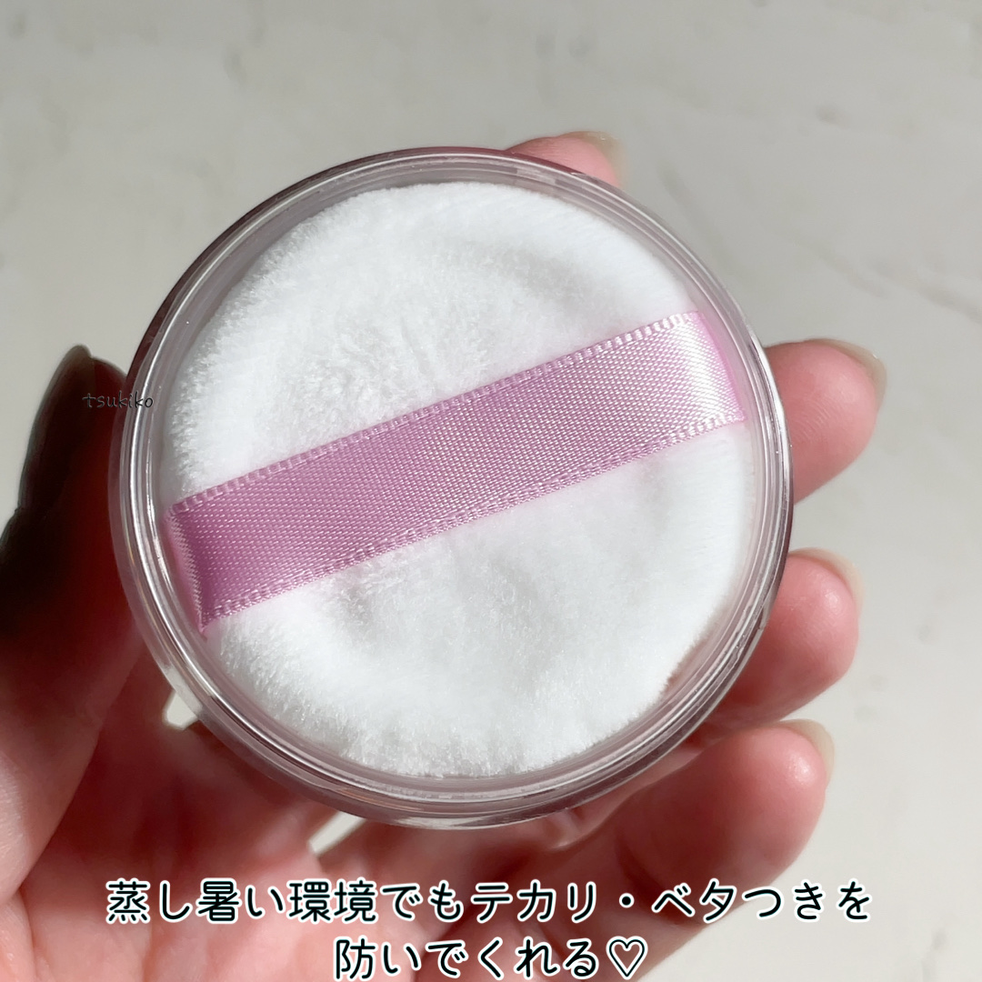 蒸し暑い環境でも、皮脂テカリを防いでサラサラ肌をキープしてくれるそうです。美しい仕上がりが長時間持続するメイク キープ パウダーです。 粒子の細かい片栗粉系のパウダーで肌なじみが良く、サラサラの仕上がりです。 このパウダーとメークキープミストでメイク崩れが軽減されるので、暑い季節には欠かせなくなる気がします。