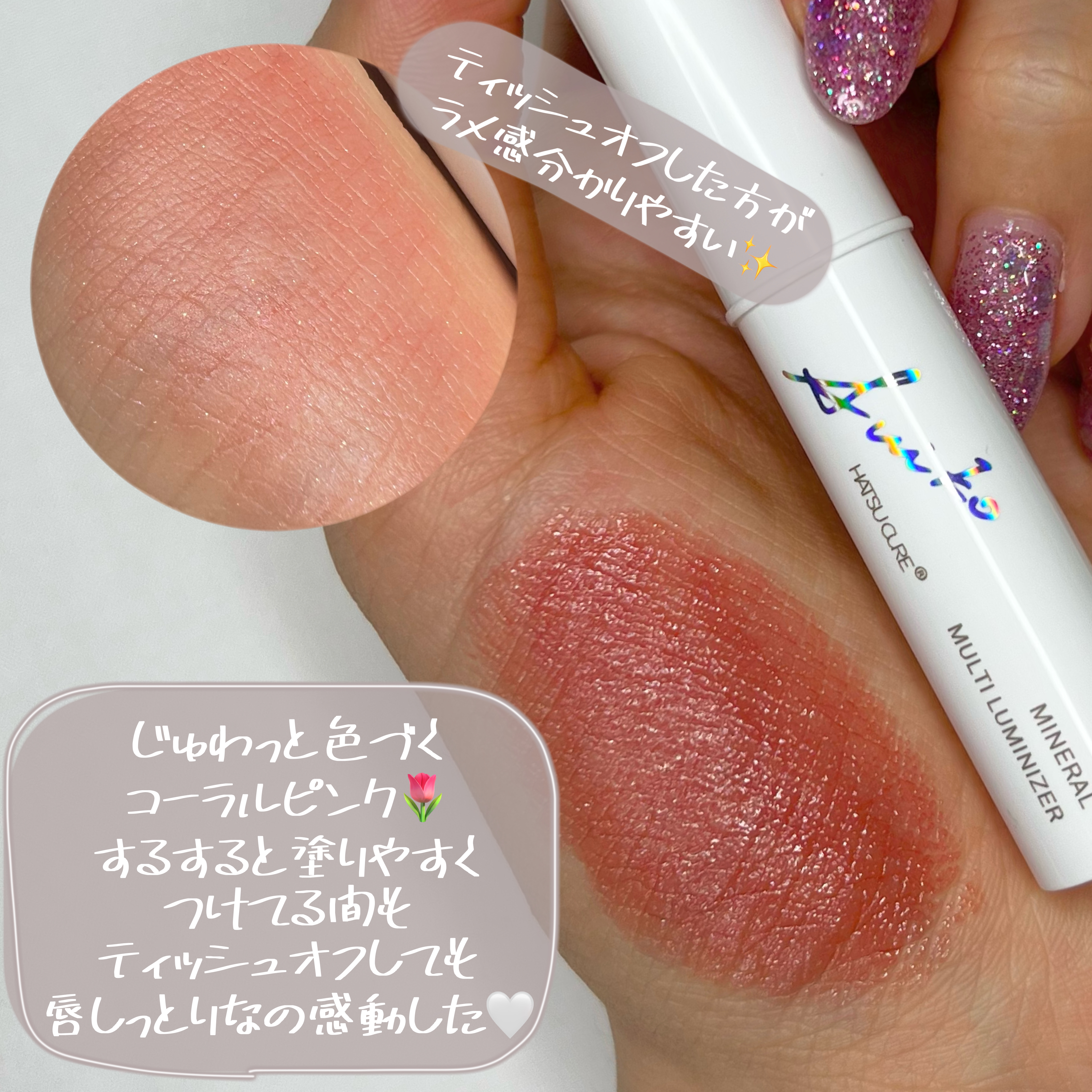 SUIKOさまより頂きました🩷🫧··🤍SUIKO🤍✔️ミネラルマルチルミナイザー03イノセントピンク◎肌に濡れたようなツヤとうるおいを与えるスティックダイプのルミナイザー。◎立体感と絶妙なツヤを作るヌーディーピンク✔️ミネラルマルチカラー✧0...