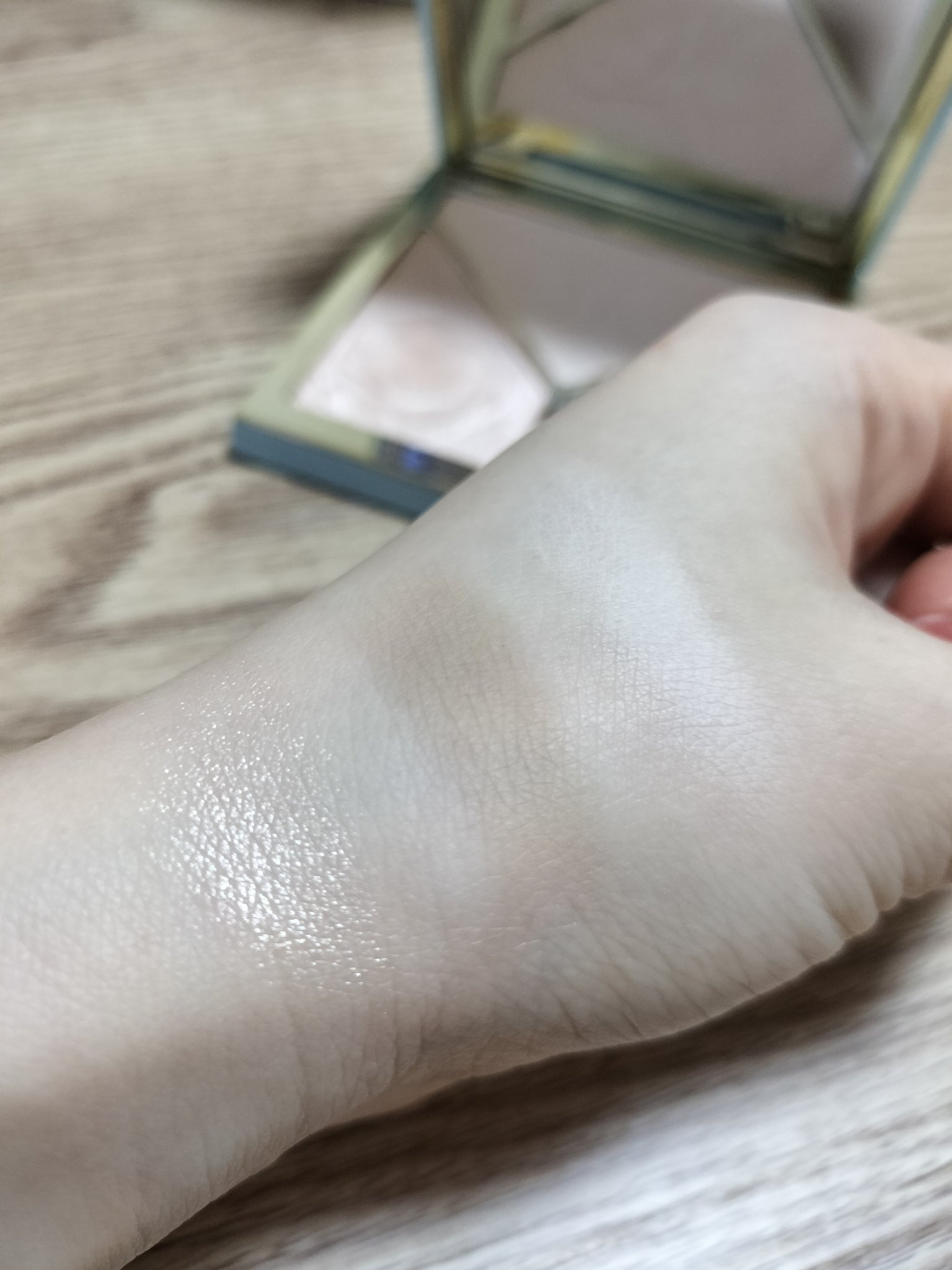 淡く発色してくれるので調節しやすい!! かなりゴリゴリとって手に載せると写真くらいの発色 ラメも激しくないから、濡れツヤ感が出て良き🙆♀️ ⚠肌の色薄めなんだけど、ラメなしハイライト、あんまり色でないかも…、 ただのパウダーって感じになるので色白仲間さんゴリゴリ塗りましょう!!