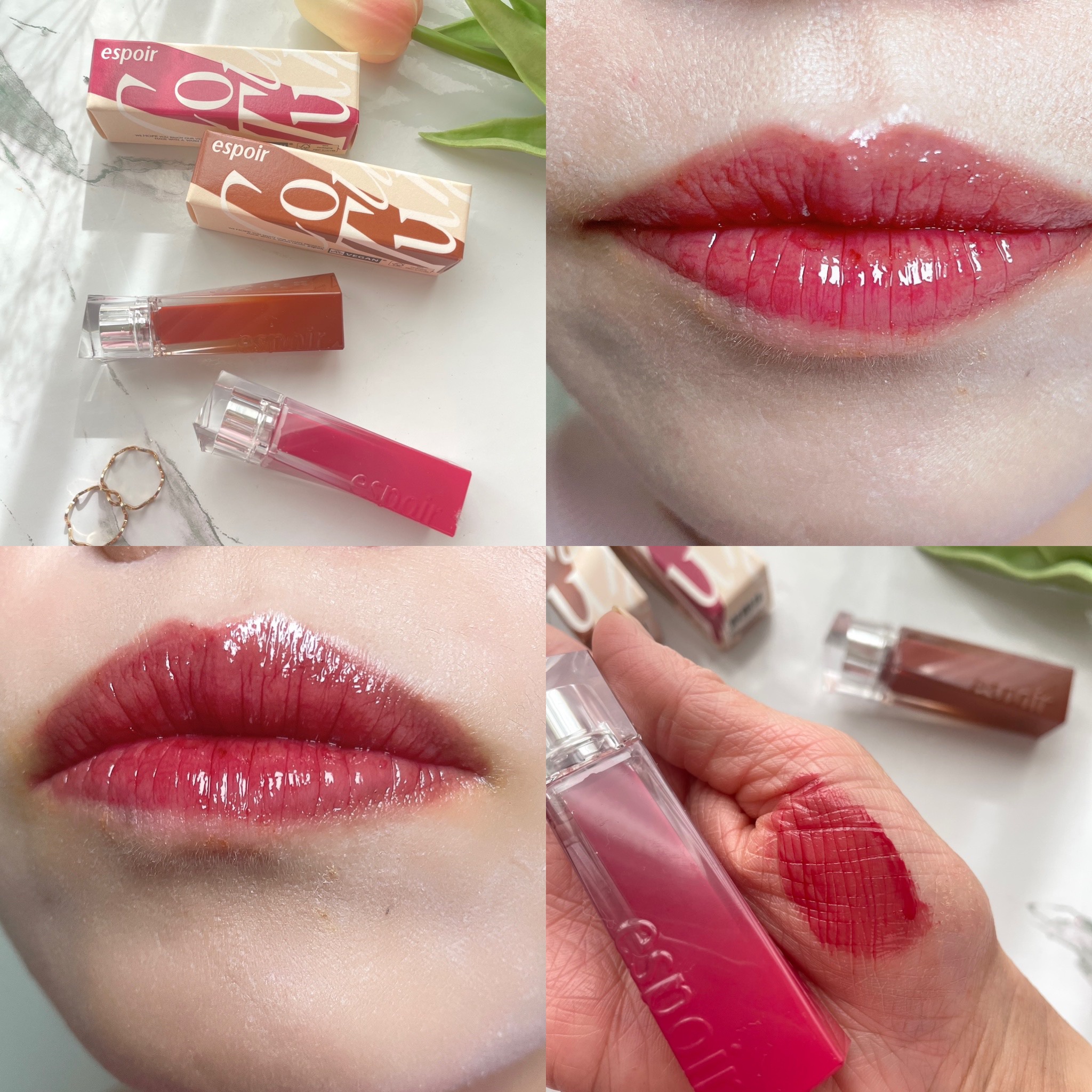 \煌めくシロップのようなツヤ感🫧/♡espoir COUTURELIPTINTGLAZE☑︎BRULEE甘く包むクリームブリュレブリックヌード。ブラウンカラーにほんのり赤みのあるカラー❤️🤎その中に、ちょっとオレンジみも感じる🧡温かみのあるカ...