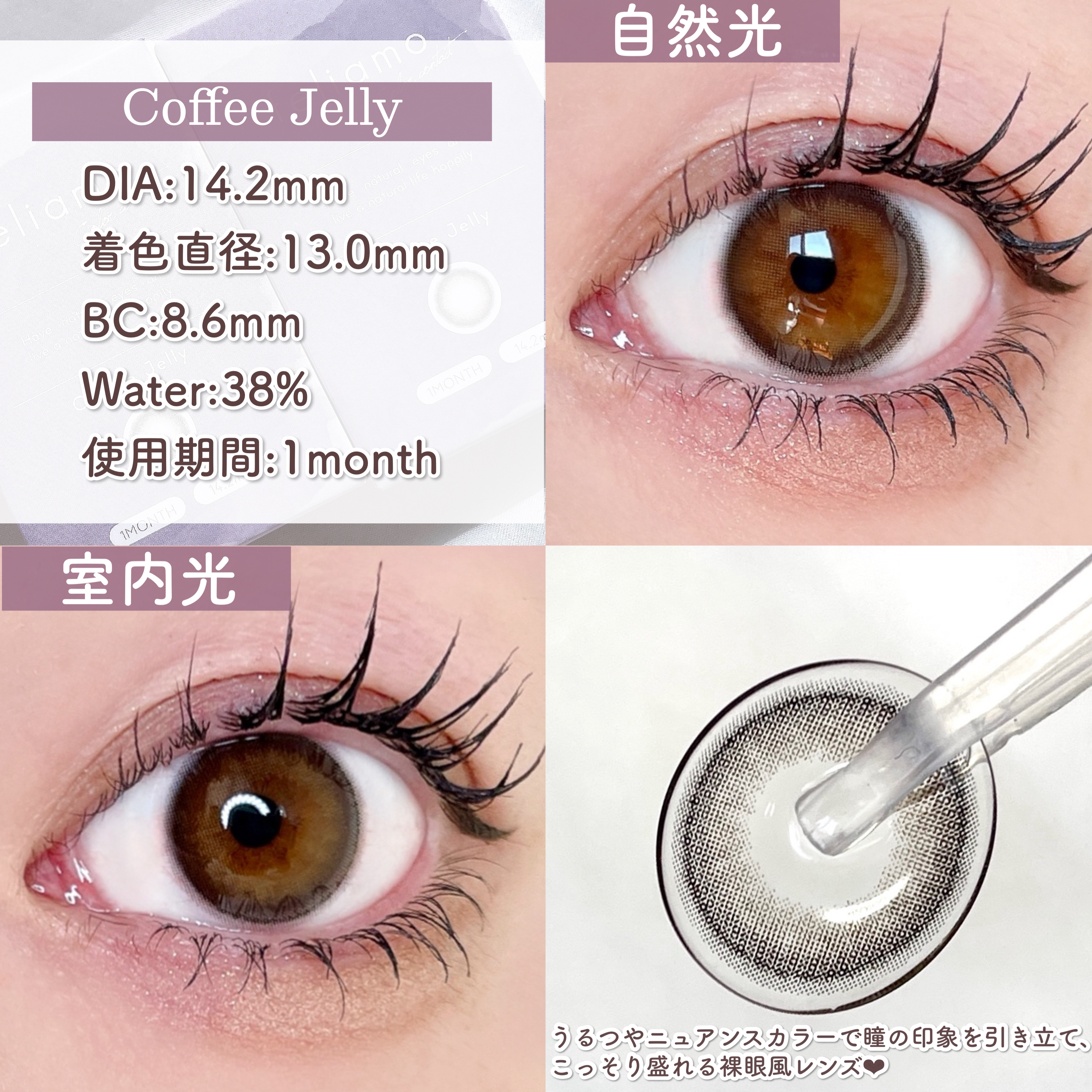 - ※2025年6月以降、商品パッケージ裏面・側面の一部表記を順次変更いたします。尚、これにかかる商品の交換・返品は承っておりません。 どんな瞬間にも溶け込む誰からも愛される瞳へ feliamoの由来は felice amore~幸せな愛~ 瞳から愛されオーラを放つ好印象レンズで女性らしさと品を演出。 オンも、オフも、特別な日も。 どんな場面にも溶け込むレンズラインナップで誰からも愛される瞳に。 ■うるつや透明感 × こっそり盛れ ナチュラルレンズ Coffee Jelly(コーヒーゼリー) ■じゅわっと透明感 × ふんわり盛れ すこし大きめレンズ Affogato(アフォガード) ■ナチュラル細フチ×裸眼盛れ トキメキうるみレンズ Oolong Tea(ウーロンティー) ■トレンド太フチ×くりっと盛れ 無敵ブラウンレンズ Tarte Tatin(タルトタタン) ■じゅわっとフチ×甘かわ盛れ あざとブラウンレンズ Tiramisu Ring(ティラミスリング) ■シュガーパール 大人気カラーBrulee Pearl(ブリュレパール)の色違いグレーレンズ! 細フチの使いやすいグレーで、どんな瞳の色(黒目・茶目)でもナチュラルに光をとりこみ、うるっと奥行きのあるこなれ可愛い印象に。 おでかけにぴったりなレンズです! 清楚な瞳になれるヒ・ミ・ツは・・・? ちゅるん細フチ×うるキラグレーカラー! ■メルティバター 盛れるのにバレにくい、毎日使えるナチュラルブラウンレンズ! じゅわっととろけるようなブラウンで、ふんわりやさしげな瞳に! どんなメイクにも似合うから毎日使える!自然に盛れる大きめブラウンレンズはfeliamoにお任せ♡ 多幸感のある印象の瞳のヒ・ミ・ツは・・・? ぼかしナチュラルブラウン×じゅんわりとろけるブラウンカラー カラーコンタクトレンズの不適正使用による眼障害の危険性等などがあります。 ●コンタクトレンズは高度管理医療機器です。不十分な洗浄・消毒など不適切なケアや、長時間・交換期間を超えた装用により、アレルギー性結膜炎、角膜感染症、角膜潰瘍等の重篤な眼障害が発生する危険性があります ●ご使用前に取扱説明書を確認してください 使用上の留意事項 ●眼科医院等を受診してからお求めください ●眼に異常を感じたら直ちにレンズ使用を中止し、お近くの眼科等で診察を受けてください ●医師の指示にしたがってご使用ください ●コンタクトレンズを装用する場合、自覚症状がなくても、眼科医院等での定期検査を受けてください ●レンズに不具合がある場合は使用しないでください