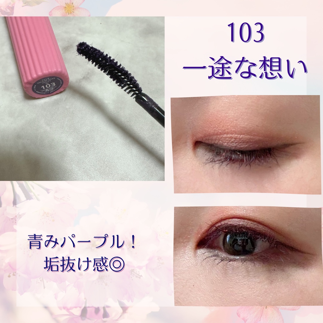 101 照れ屋な恋人 鮮やかなオレンジ! まつ毛の印象がすごく変わり、パッと明るい印象へ。 102 恋の始まり 青みピンク。 目尻だけにアクセントに入れたりする使い方もいいと思います! 103 一途な想い デイリー使いに一番使いやすい、チャレンジしやすい色。 遠目で見ると黒っぽいですが青み紫。