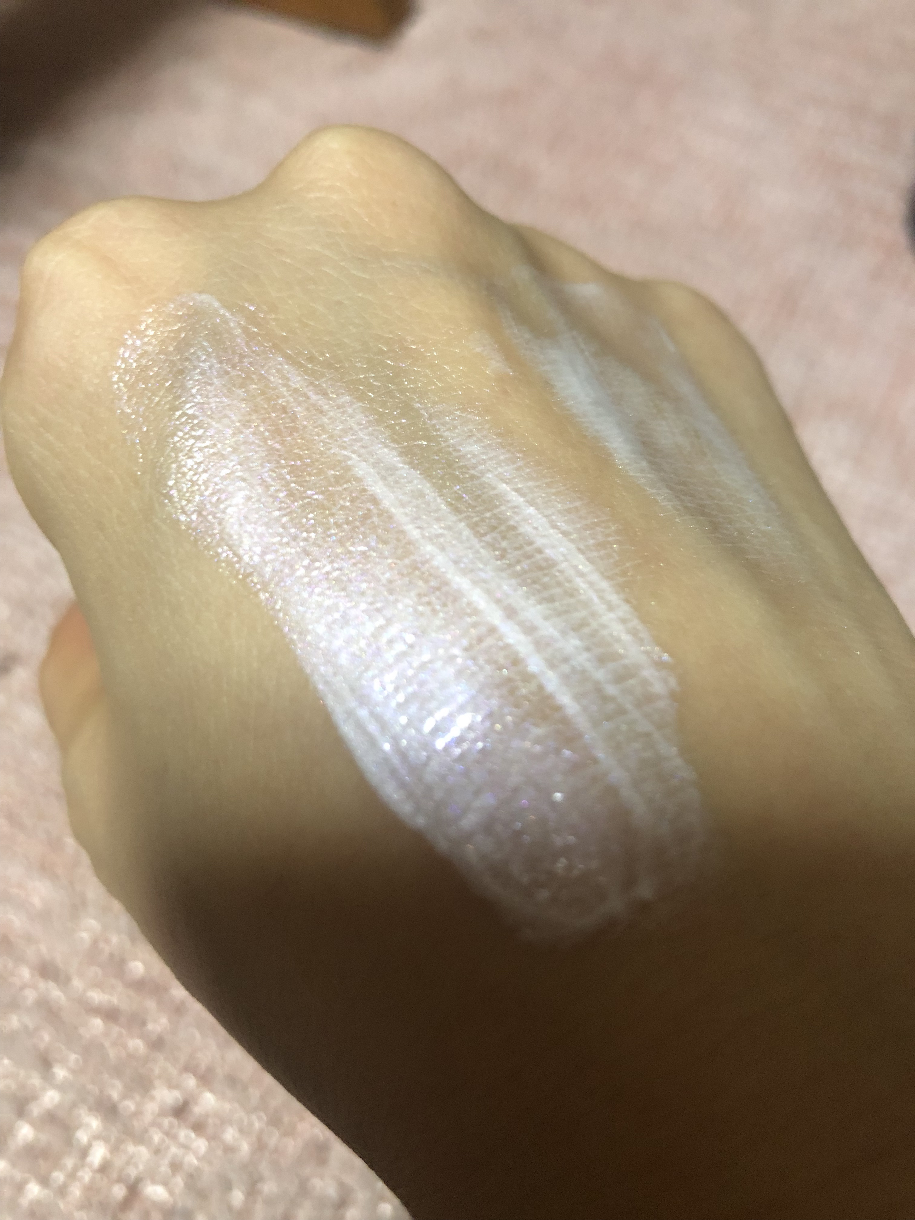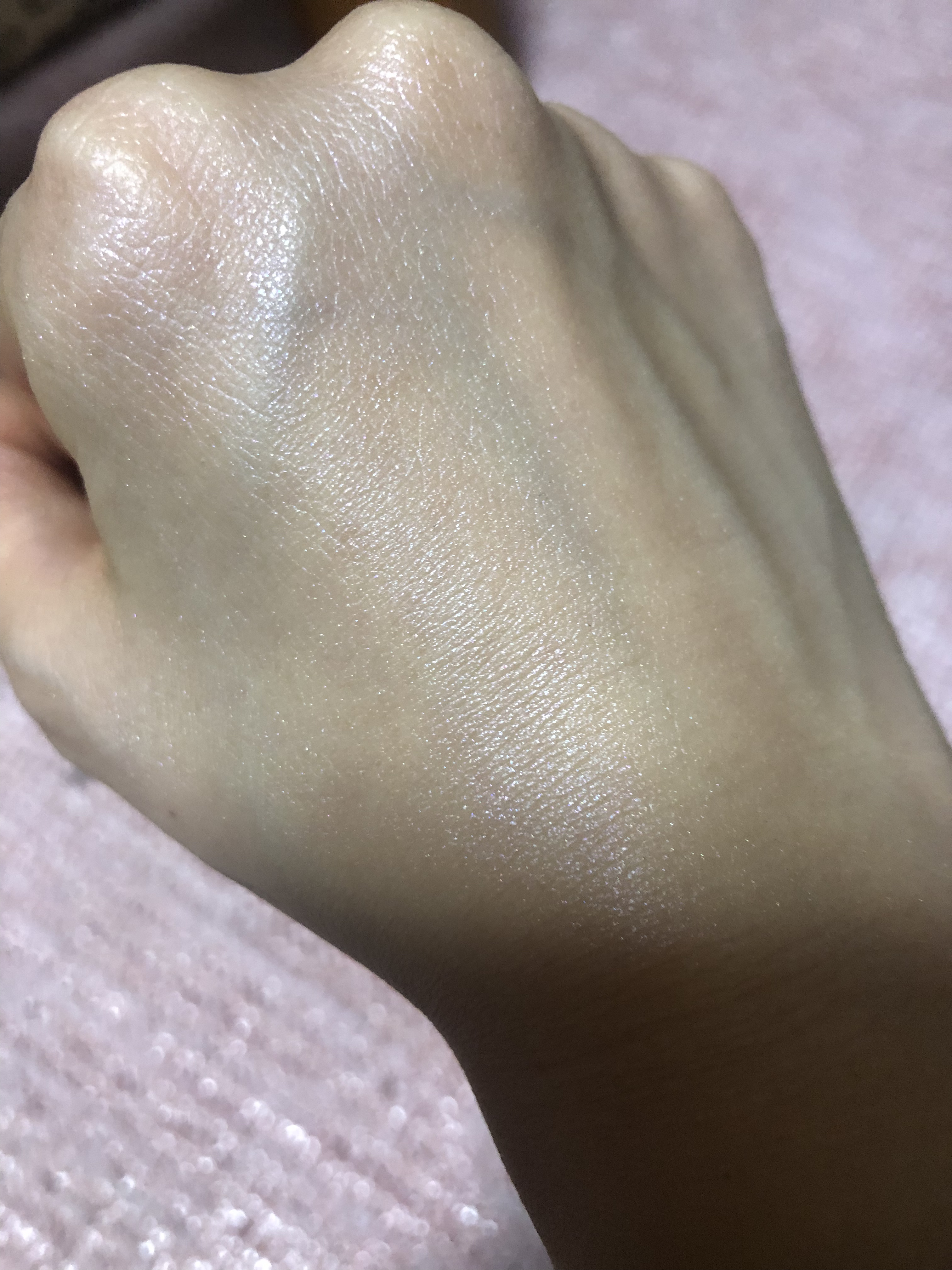 まず、1プッシュ出してみると一見めっちゃ白くてえ、これ馴染むのか…? みたいなクリームが出てきます😂 もっと薄く塗り広げるとキラキラ感とかはなく、ツヤ!って感じでめっちゃよかったです… ただ皮脂が多い鼻のあたりは少し崩れる感じがしたので、オイリー肌の人よりも乾燥肌な人向けな感じはしました🥺