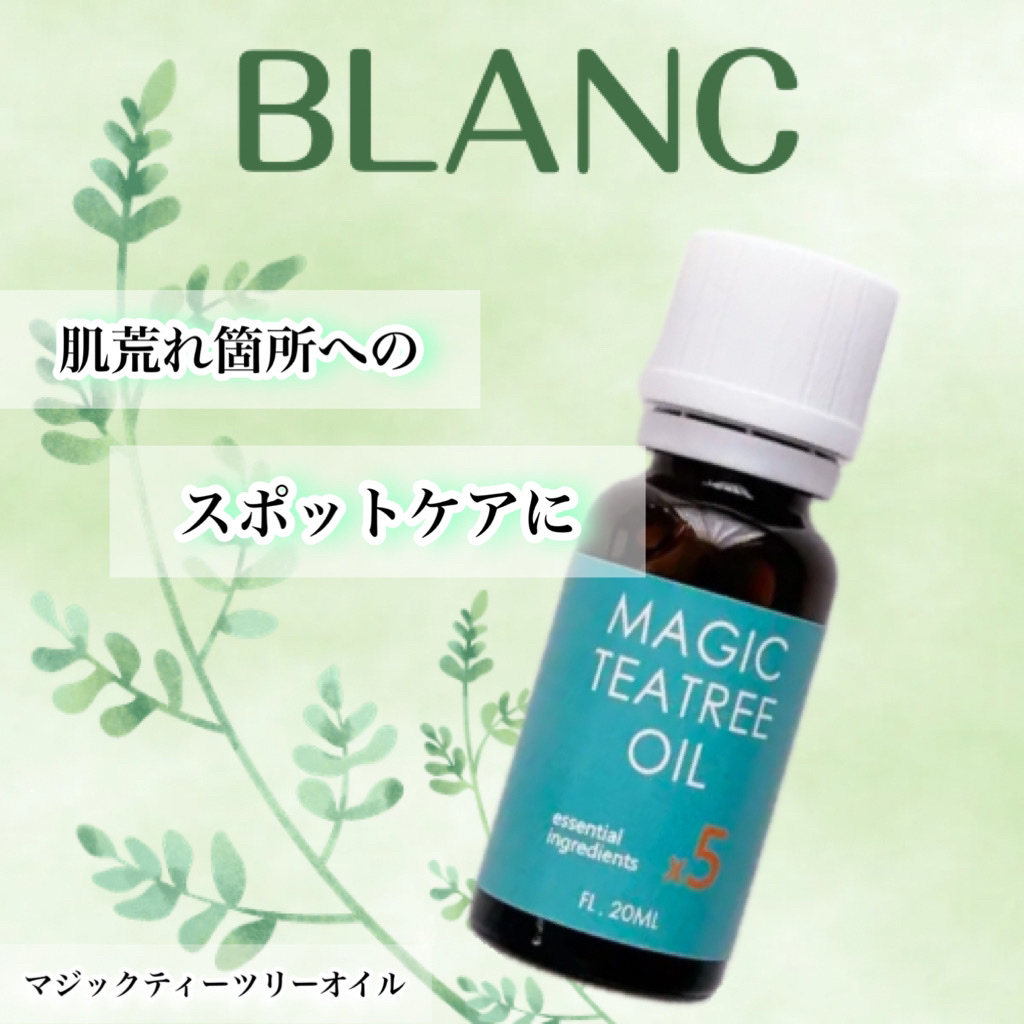- マジックティーツリーオイルは、乾燥や皮脂による肌悩みをスポットケアし、整える商品です。ブラン代表の整肌成分である4‐テルピネオールで肌トラブルの原因の1つである皮脂を素早くケアします。 【このような方におススメ】 ✔乾燥による肌悩みが気になる方 ✔過度な皮脂と油分が気になる方 ✔べたつきのないスキンケアを探されている方 ✔肌荒れを防ぎたい方 ✔年齢性別肌タイプ関係なく使用できる商品を探されている方 【使用方法】 ①洗顔後、コットンに適量を取り、軽くふき取った後馴染ませます。 ②気になる部分の肌をきれいに洗顔後、トナー→クリームの順でお肌を整えます。 ③綿棒に1~2滴落とし、気になる部分に塗ります。 経過を見て朝晩のスキンケアの最後の段階に塗ることを繰り返します。