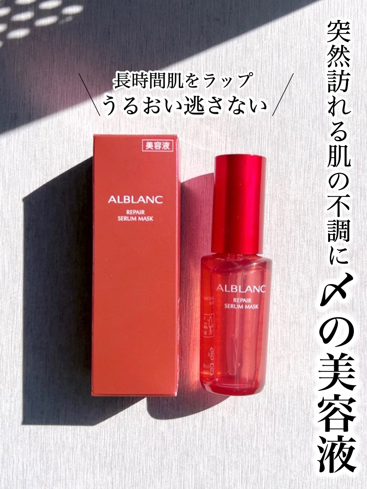 - 【医薬部外品】 リペア セラムマスクは、肌に絡みつくように密着。 有効成分で肌荒れを防ぎます。 また、アルブラン独自の美容成分(保湿)配合で乾燥を防止します。 角層の機能の働きを助け、一滴でキメの整った健やかな肌に保ちます。