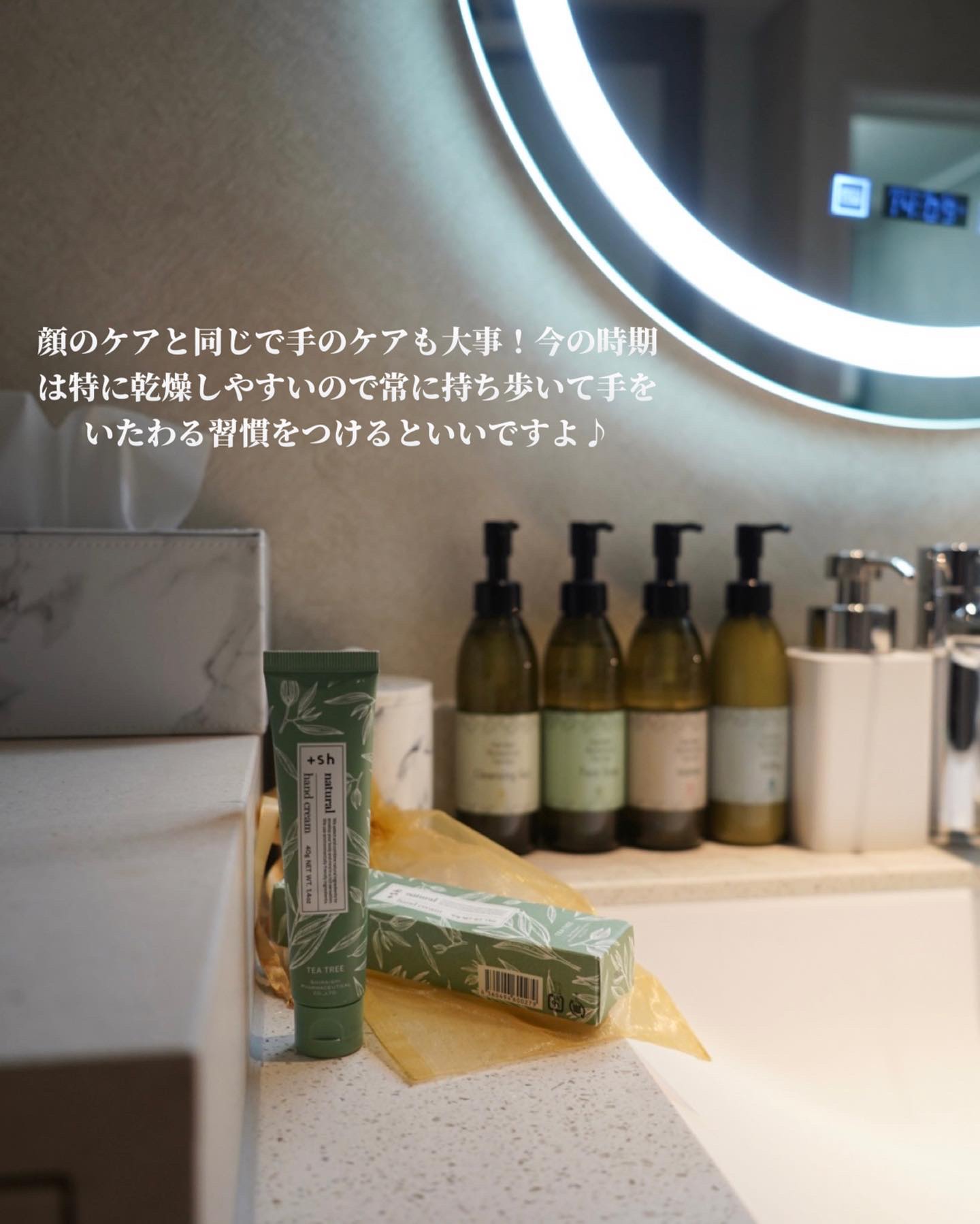TEA TREEの香りを選びましたが、とにかく心地良い香りに癒される…この香りはリラックス効果もあります! ベタつかないのに、しっとりするしスッキリデザインが丁度よくポーチに入れて持ち運びしやすいです♡ 肌にやさしいフリー処方だからプレゼントもしやすいです!