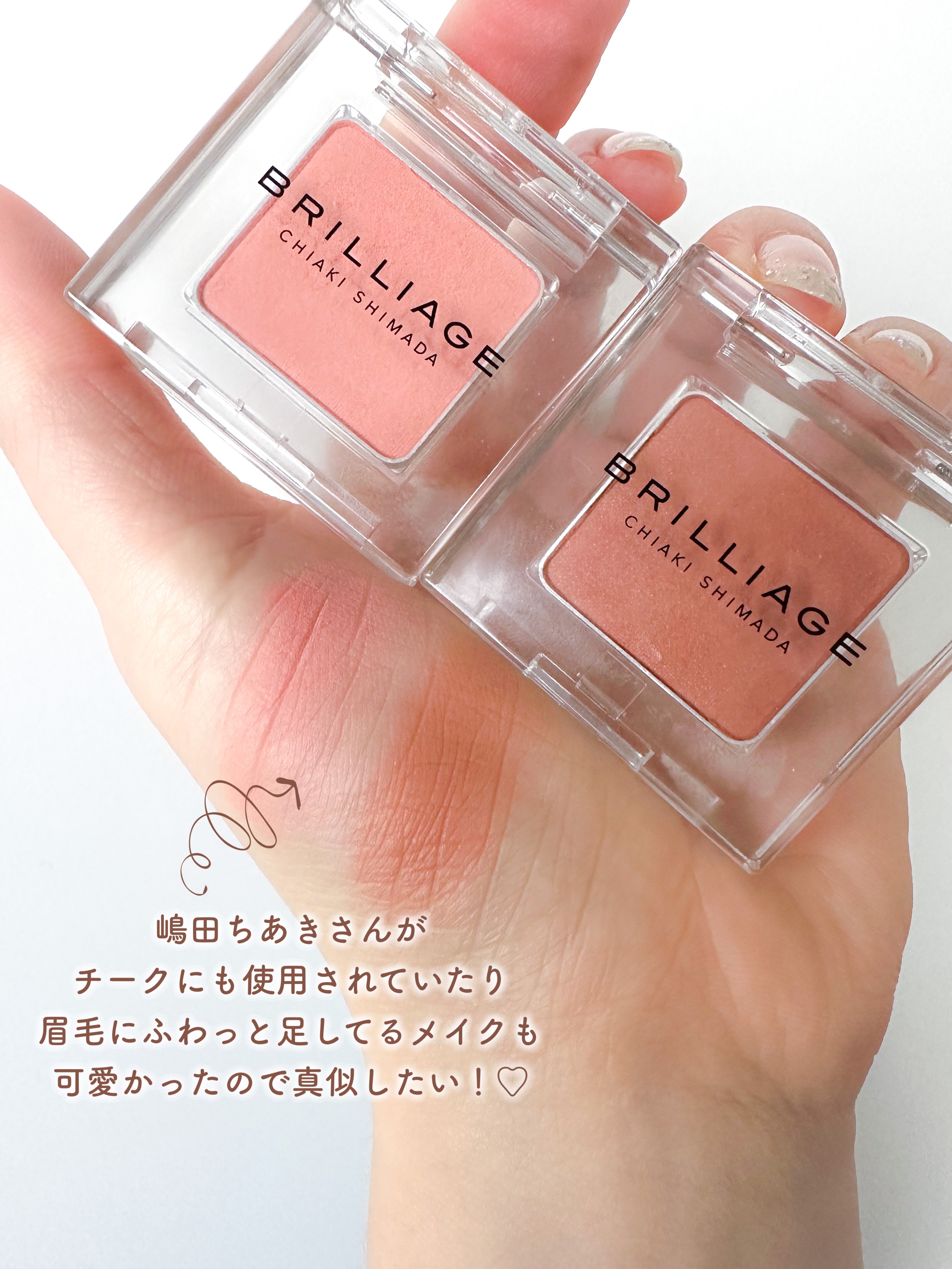 肌馴染みのいい2色が登場します❣️ どんな方でも使いやすいピンクベージュのS06 レイ。マットな質感の中にさりげなく光るラメがとっても可愛い✨ 大人可愛いツヤ感爆発のG06 ビリー。 ゴールド系のグリッターかと思いきや、ピンクラメも入っていてビックリ‼️ 大人は締め色使わずにアイラインやマスカラで締めるのが今時らしい🥺✨ 今年のBRILLIAGEも可愛さぶっ飛ばしていますねぇ…🥴💓