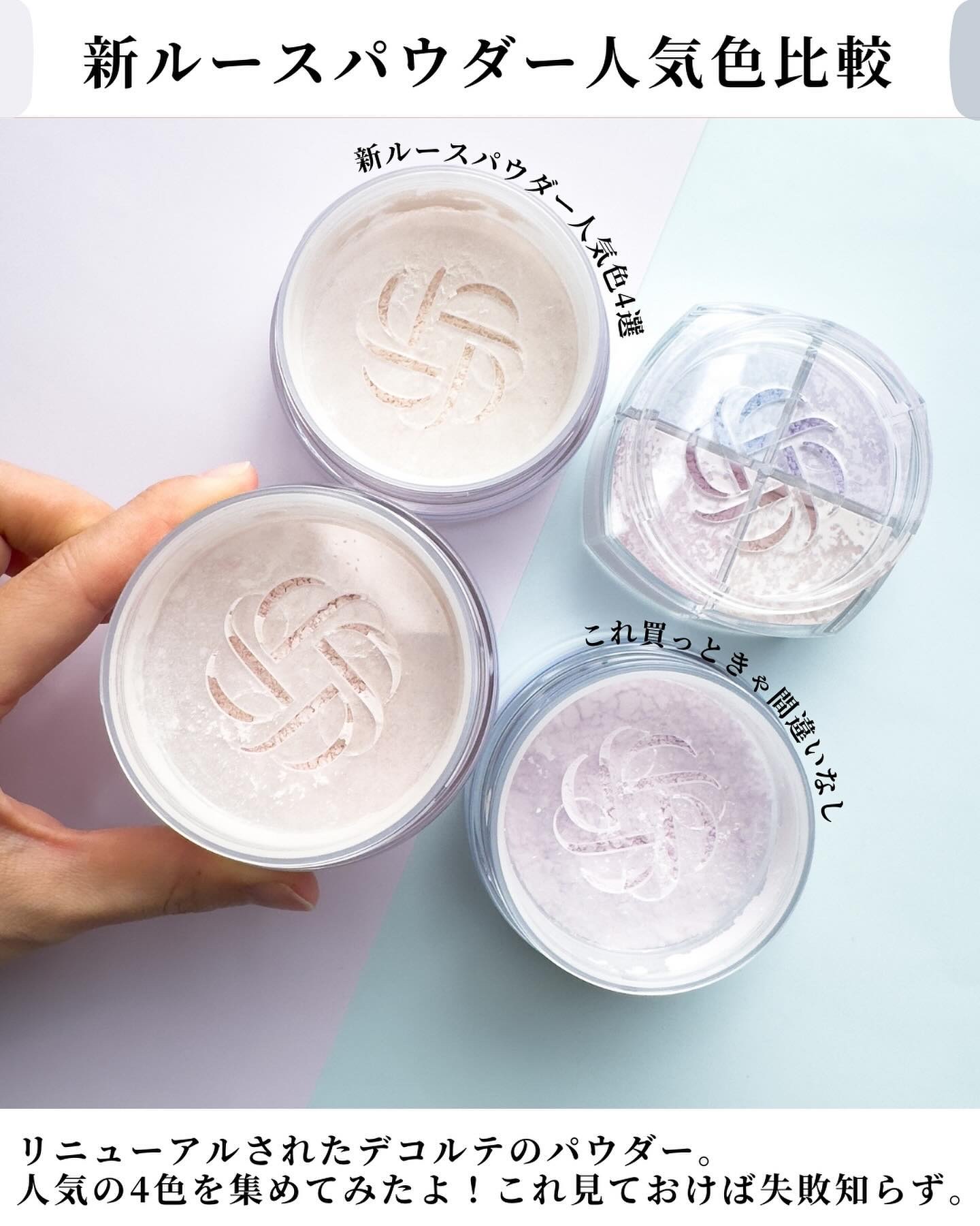 明るめイエベ101使用中𓂃𓍯COSMEDECORTÉルースパウダー00 translucent(ツヤ01 crystaltranslucent(イルミネイトツヤ02 lucentlilac(セミツヤ03 luminouspink(セミツヤ ...