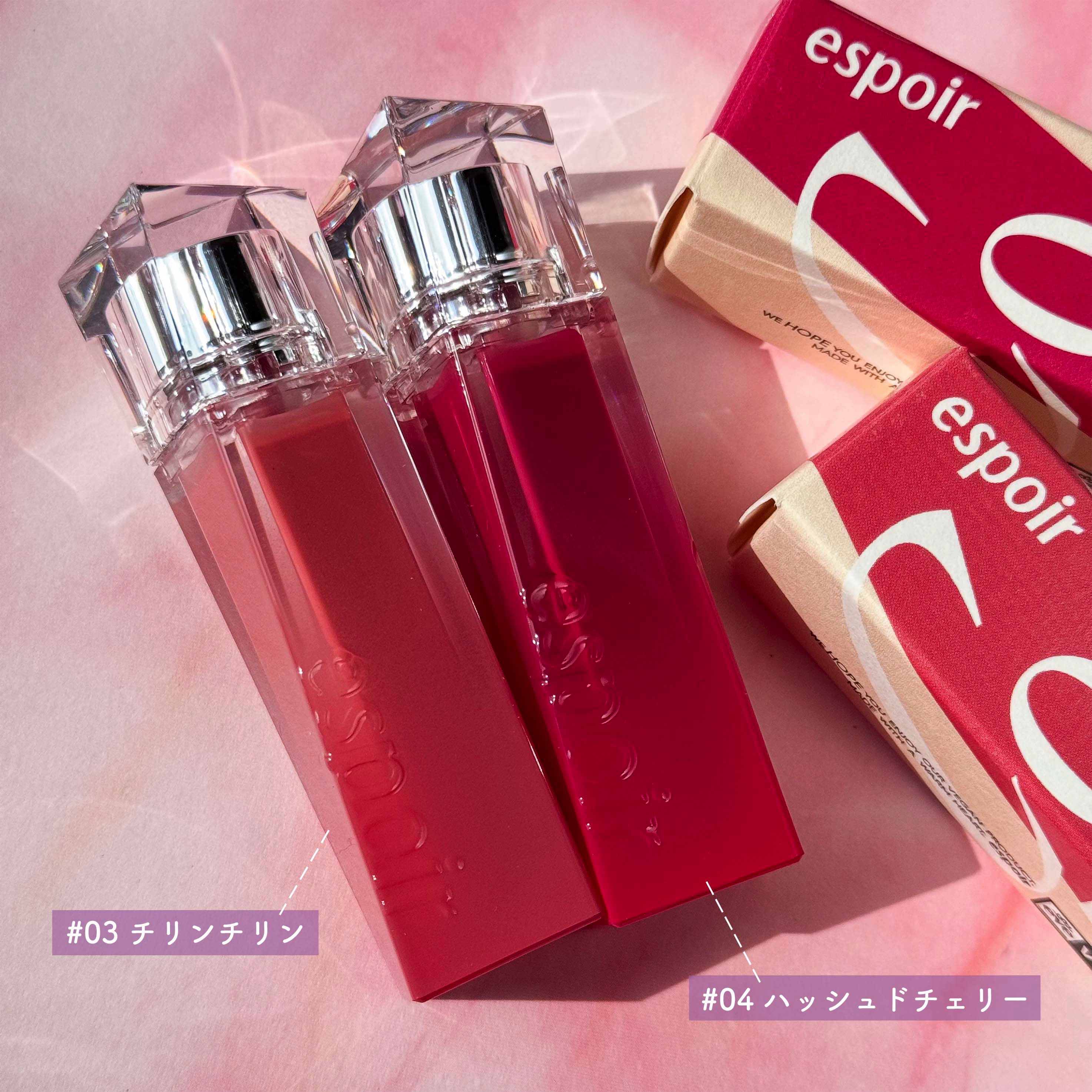 espoirクチュールリップティントグレイズ04ハッシュドチェリーさくらんぼのような色で綺麗な赤リップです!こちらのティントはアプリケーターがとても塗りやすいため愛用してます♪とても色が澄んでいて美しいです!#韓国コスメ#ティント#リップ#テ...