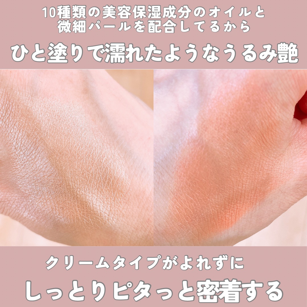 - 肌に濡れ艶をプラスする生ぷにっ質感フェイスカラー。 ハイライト・チーク・アイシャドウなどマルチに使える生ぷにっ質感のフェイスカラー。塗った瞬間サラッとしてヨレにくく、オイルをまとったようなうるみ艶をプラスします。 水・汗・皮脂に強く落ちにくい。美容保湿成分10種(スクワラン、ホホバ種子油、マンゴー種子脂、ヒマワリ種子油、マカデミア種子油、ヤシ油、セラミドNP、ローズマリー葉エキス、アロエベラ葉エキス、加水分解コラーゲン)配合。