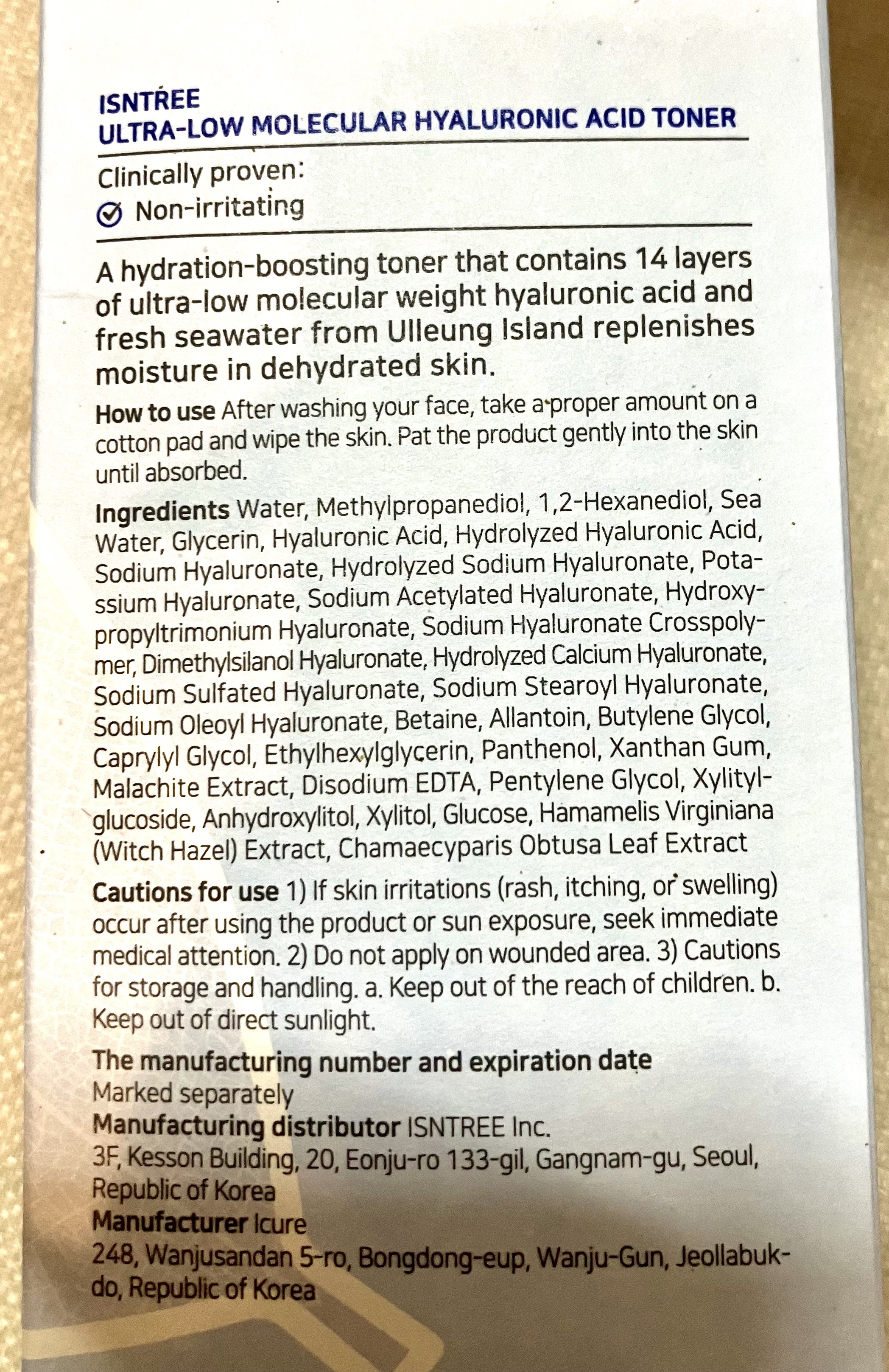 商品詳細情報Isntree 超低分子ヒアルロン酸トナー