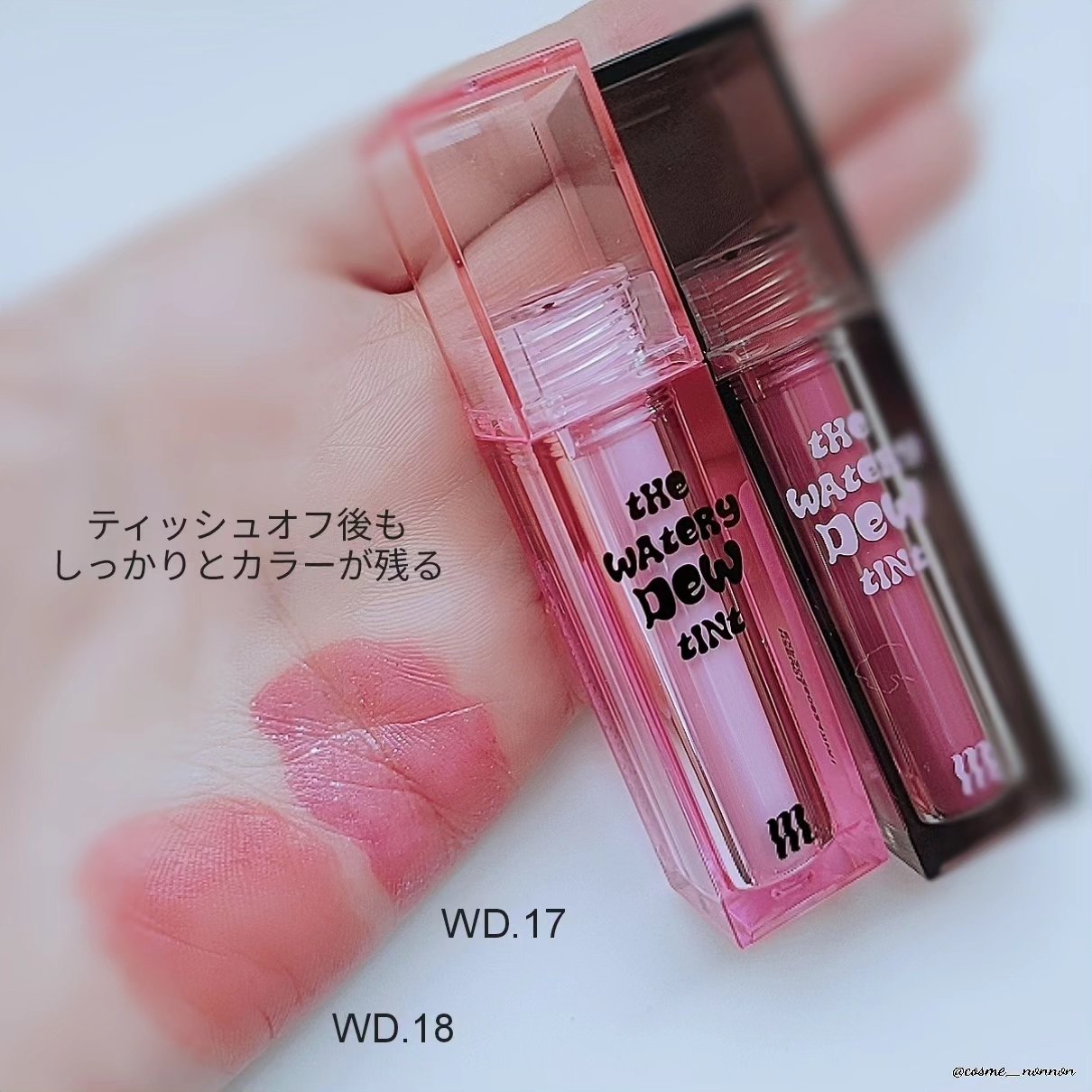 MERZY ザウォータリーデューティント税込1,320円WD3ピンクヘイズ…明るいブライトピンクカラー🩷ブルベさん向けの青みピンクでめちゃめちゃ可愛い☺️水のような軽いテクスチャーで、唇にフィット!綺麗な発色が長時間続く、ガラス玉のような唇に...