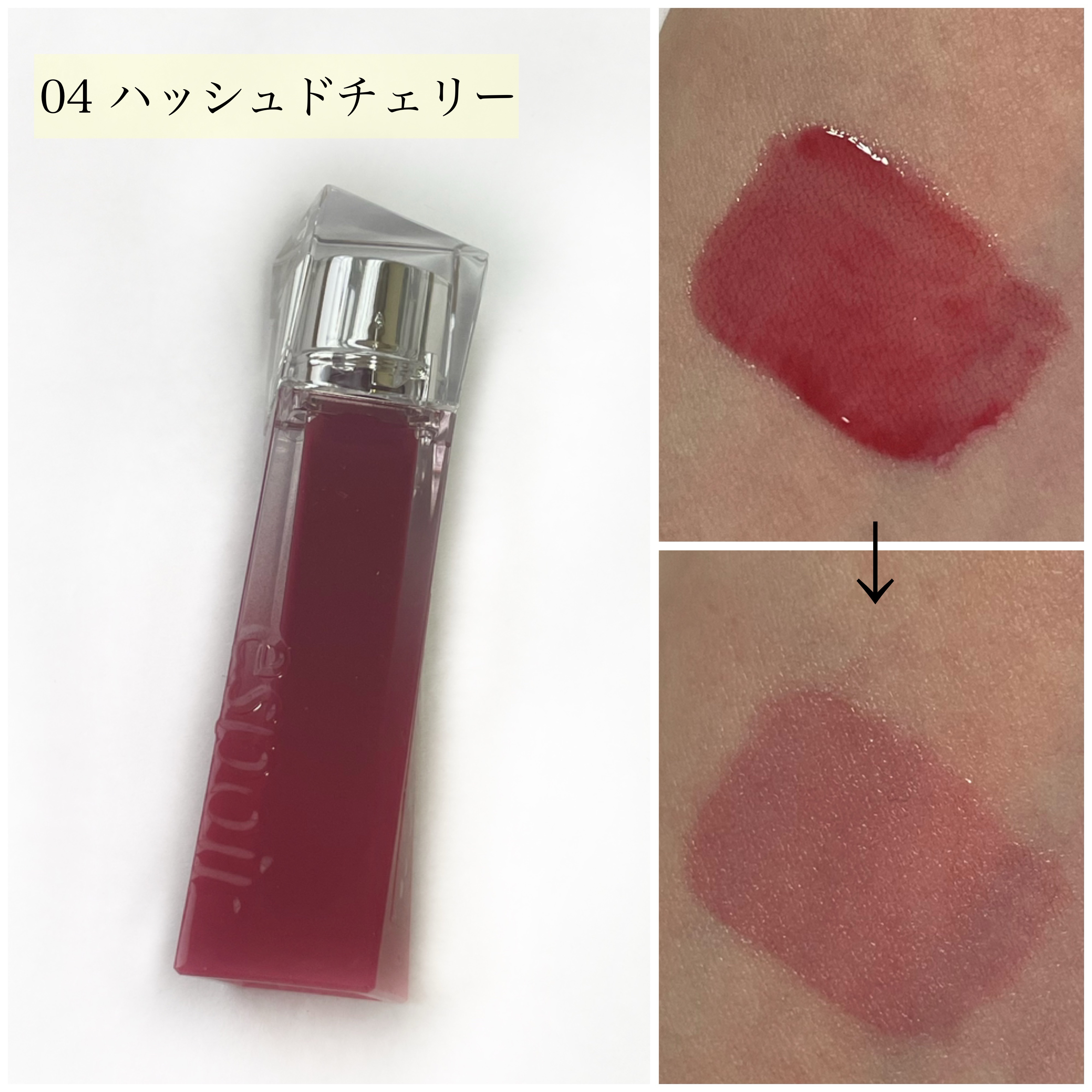 - <アップルシャーベット> 水、リンゴ酸ジイソステアリル、ビスジグリセリルポリアシルアジペート-2、ダイマージリノール酸ダイマージリノレイルビス(ベヘニル/イソステアリル/フィトステリル)、水添ポリイソブテン、ジグリセリン、ジフェニルジメチコン、セチルPEG/PPG-10/1ジメチコン、トリメチルシロキシフェニルジメチコン、ポリソルベート60、ペンチレングリコール、イソステアリン酸ソルビタン、イソステアリン酸ポリグリセリル-4、フェノキシエタノール、(アクリル酸ヒドロキシエチル/アクリロイルジメチルタウリンNa)コポリマー、セテアレス-20、スクワラン、香料、ジラウラミドグルタミドリシンNa、エチルヘキシルグリセリン、エチレンジアミンジコハク酸3Na、黄5、赤227、赤104(1)、黄4 <オッドコーラル> 水、リンゴ酸ジイソステアリル、ダイマージリノール酸ダイマージリノレイルビス(ベヘニル/イソステアリル/フィトステリル)、ビスジグリセリルポリアシルアジペート-2、水添ポリイソブテン、ジフェニルジメチコン、ジグリセリン、セチルPEG/PPG-10/1ジメチコン、トリメチルシロキシフェニルジメチコン、ポリソルベート60、ペンチレングリコール、イソステアリン酸ソルビタン、イソステアリン酸ポリグリセリル-4、フェノキシエタノール、セテアレス-20、(アクリル酸ヒドロキシエチル/アクリロイルジメチルタウリンNa)コポリマー、スクワラン、香料、ジラウラミドグルタミドリシンNa、エチルヘキシルグリセリン、エチレンジアミンジコハク酸3Na、水酸化Al、ポリアクリル酸アンモニウム、BG、酸化チタン、黄5、赤104(1)、黄4、赤227、青1 <チリンチリン> 水、リンゴ酸ジイソステアリル、ダイマージリノール酸ダイマージリノレイルビス(ベヘニル/イソステアリル/フィトステリル)、ビスジグリセリルポリアシルアジペート-2、水添ポリイソブテン、ジグリセリン、ジフェニルジメチコン、セチルPEG/PPG-10/1ジメチコン、トリメチルシロキシフェニルジメチコン、ポリソルベート60、ペンチレングリコール、イソステアリン酸ソルビタン、イソステアリン酸ポリグリセリル-4、フェノキシエタノール、セテアレス-20、(アクリル酸ヒドロキシエチル/アクリロイルジメチルタウリンNa)コポリマー、スクワラン、香料、ジラウラミドグルタミドリシンNa、エチルヘキシルグリセリン、エチレンジアミンジコハク酸3Na、水酸化Al、ポリアクリル酸アンモニウム、BG、酸化チタン、黄5、赤227、黄4、赤104(1)、青1 <ハッシュドチェリー> 水、リンゴ酸ジイソステアリル、ビスジグリセリルポリアシルアジペート-2、ダイマージリノール酸ダイマージリノレイルビス(ベヘニル/イソステアリル/フィトステリル)、水添ポリイソブテン、ジグリセリン、ジフェニルジメチコン、トリメチルシロキシフェニルジメチコン、セチルPEG/PPG-10/1ジメチコン、ポリソルベート60、ペンチレングリコール、イソステアリン酸ソルビタン、イソステアリン酸ポリグリセリル-4、フェノキシエタノール、セテアレス-20、(アクリル酸ヒドロキシエチル/アクリロイルジメチルタウリンNa)コポリマー、スクワラン、香料、ジラウラミドグルタミドリシンNa、エチルヘキシルグリセリン、エチレンジアミンジコハク酸3Na、赤227、黄5、黄4、赤104(1)、青1 <ローザ> 水、リンゴ酸ジイソステアリル、ダイマージリノール酸ダイマージリノレイルビス(ベヘニル/イソステアリル/フィトステリル)、ビスジグリセリルポリアシルアジペート-2、水添ポリイソブテン、ジグリセリン、ジフェニルジメチコン、トリメチルシロキシフェニルジメチコン、セチルPEG/PPG-10/1ジメチコン、ポリソルベート60、ペンチレングリコール、イソステアリン酸ソルビタン、イソステアリン酸ポリグリセリル-4、フェノキシエタノール、セテアレス-20、(アクリル酸ヒドロキシエチル/アクリロイルジメチルタウリンNa)コポリマー、スクワラン、香料、ジラウラミドグルタミドリシンNa、エチルヘキシルグリセリン、エチレンジアミンジコハク酸3Na、酸化チタン、赤227、赤104(1)、黄4、黄5、水酸化Al、ポリアクリル酸アンモニウム、BG、青1 <ピンキーローキー> 水、リンゴ酸ジイソステアリル、ダイマージリノール酸ダイマージリノレイルビス(ベヘニル/イソステアリル/フィトステリル)、ビスジグリセリルポリアシルアジペート-2、水添ポリイソブテン、ジグリセリン、ジフェニルジメチコン、トリメチルシロキシフェニルジメチコン、セチルPEG/PPG-10/1ジメチコン、ポリソルベート60、ペンチレングリコール、イソステアリン酸ソルビタン、イソステアリン酸ポリグリセリル-4、フェノキシエタノール、セテアレス-20、(アクリル酸ヒドロキシエチル/アクリロイルジメチルタウリンNa)コポリマー、スクワラン、香料、ジラウラミドグルタミドリシンNa、エチルヘキシルグリセリン、エチレンジアミンジコハク酸3Na、酸化チタン、黄5、赤227、黄4、赤104(1)、青1、水酸化Al、ポリアクリル <アンダーモーブ> 水、リンゴ酸ジイソステア